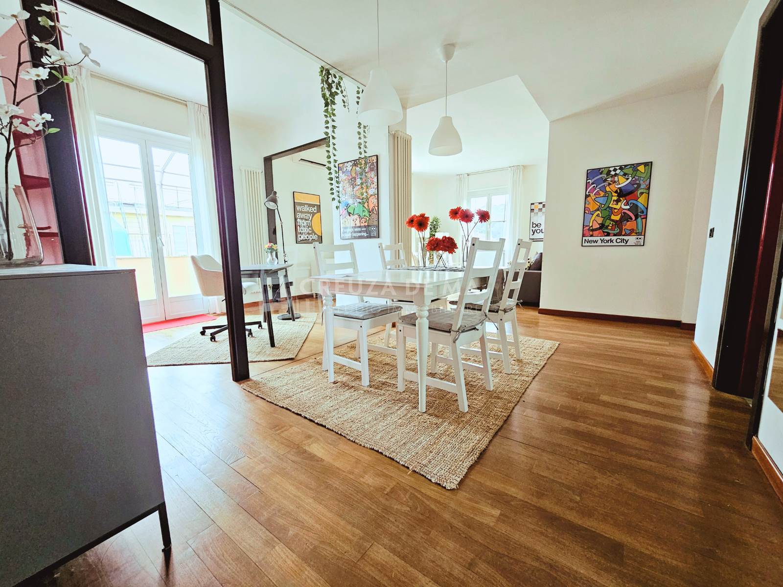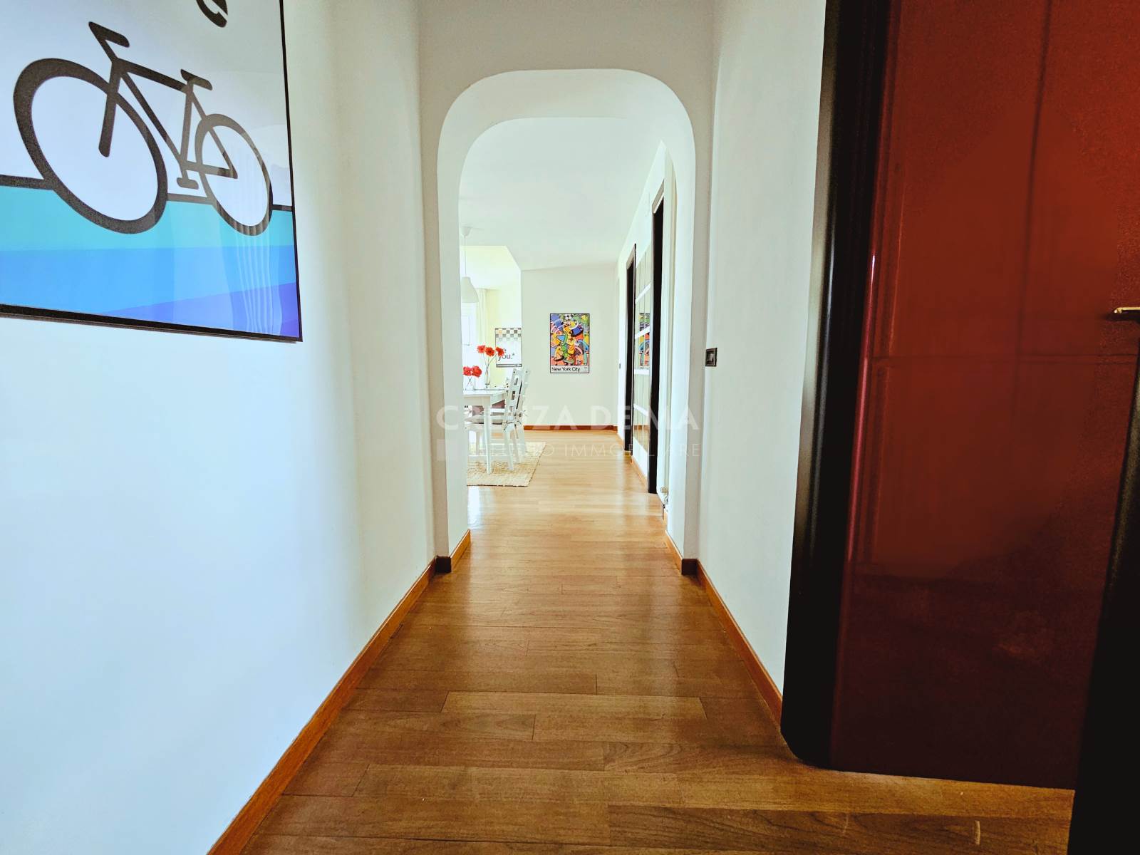 Completano la proprietà doppi servizi finestrati, di cui uno con accesso al terrazzino di servizio, che garantiscono funzionalità e comfort. Le finiture interne sono di eccellente qualità, con pavimentazione in parquet e porta blindata. L'immobile è dotato di impianto di climatizzazione nel salone e riscaldamento autonomo, con spese di gestione contenute. È prevista la possibilità di acquisto dell'immobile completamente arredato con mobilio nuovo e moderno, rendendolo idoneo sia come residenza principale che secondaria, o come investimento.