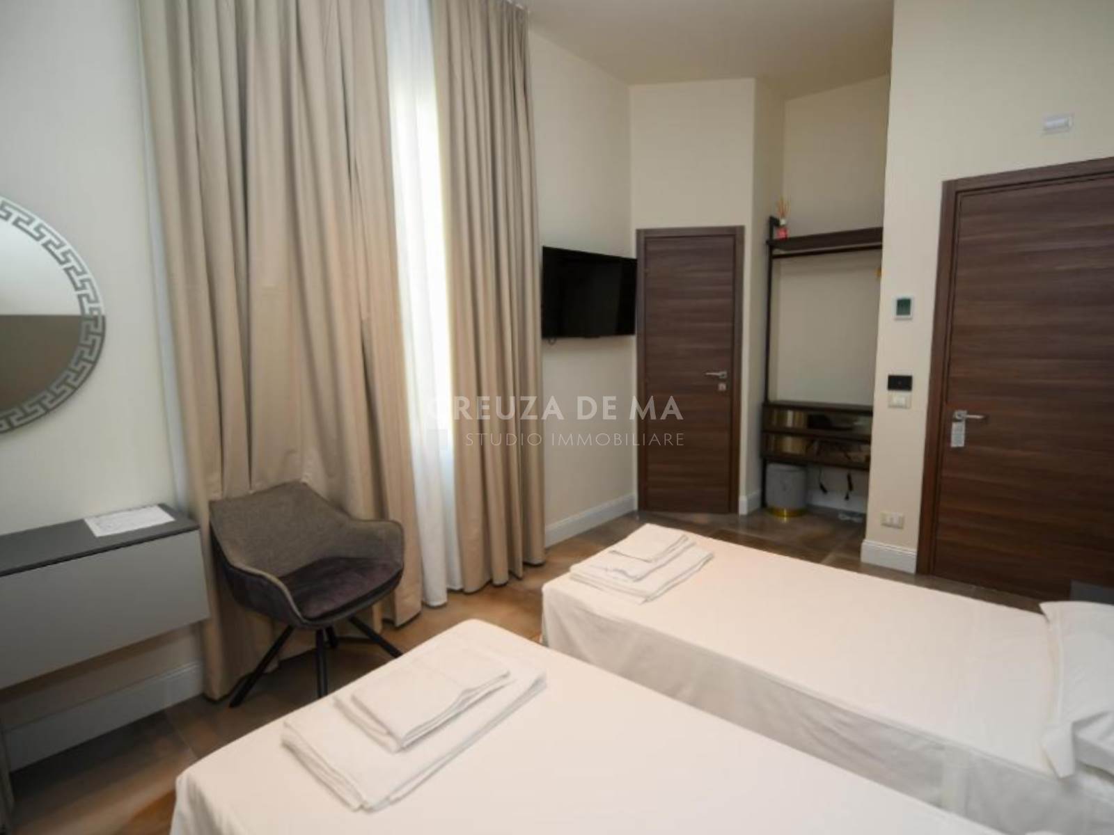 La proprietà dispone di 14 camere e 2 private, ma presenta l'importante opportunità di un ampliamento strutturale che prevede la sopraelevazione di ulteriori due piani, portando il totale a circa 30 camere. Durante la ristrutturazione, sono stati implementati sistemi di sicurezza all'avanguardia, tra cui un impianto antincendio completo con porte REI, cavi elettrici antincendio e una scala di emergenza.