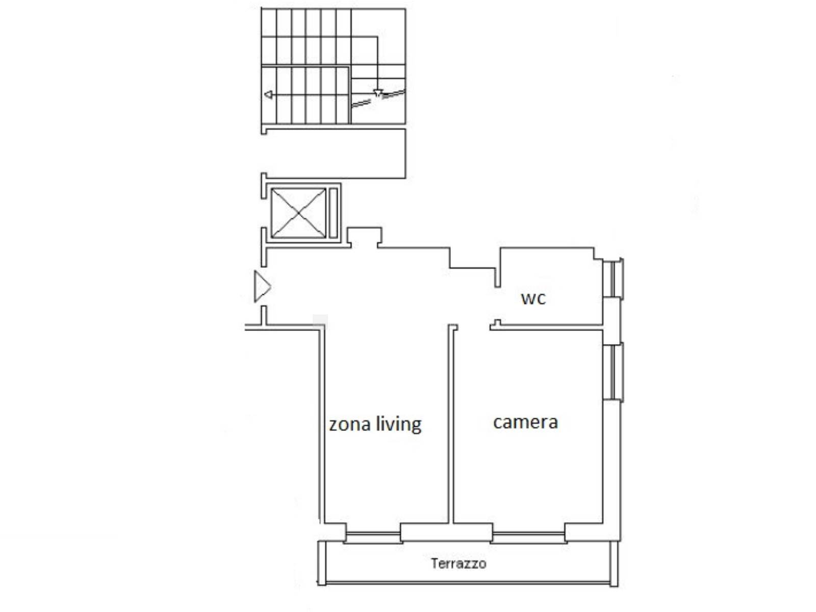 ingresso, soggiorno con cucina a vista, camera, bagno con finestra e piccolo ripostiglio.