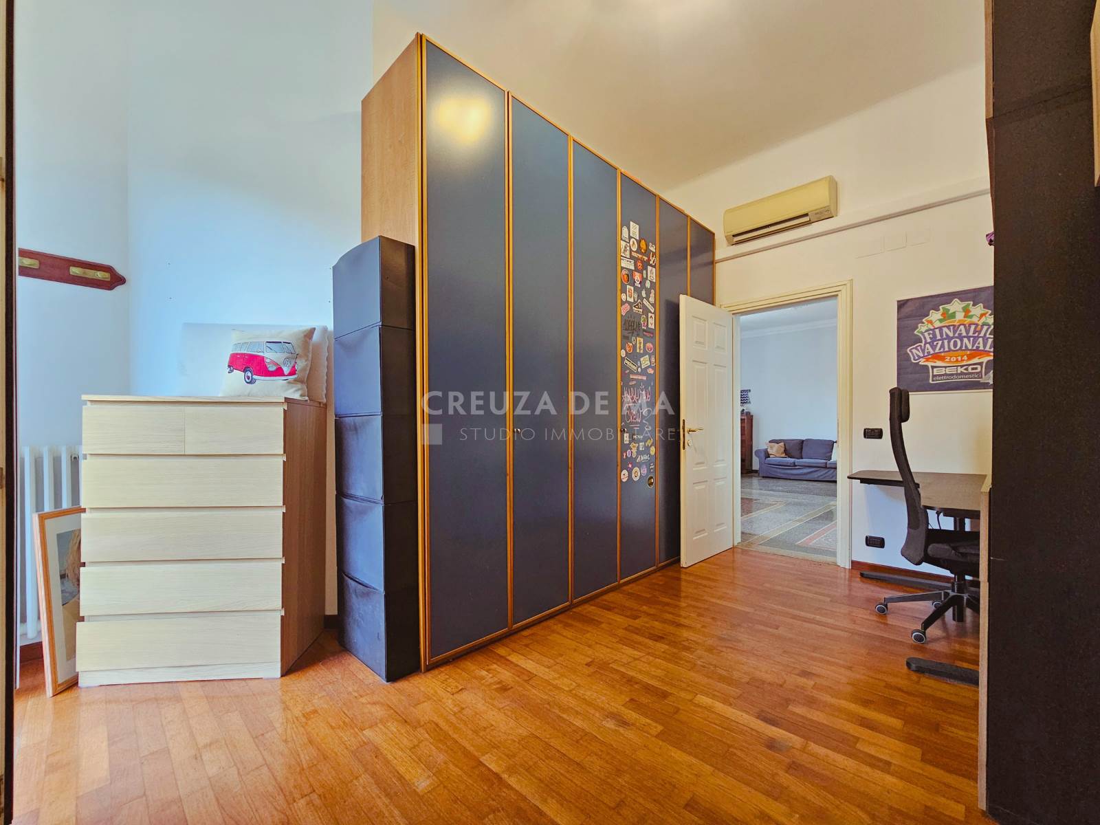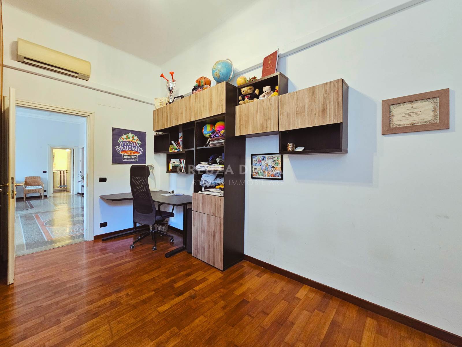 L’appartamento accoglie gli ospiti in un ampio soggiorno, dove convivono armoniosamente una spaziosa zona conversazione e una generosa area pranzo. La cucina è abitabile e ben attrezzata, pensata per garantire funzionalità e comfort quotidiano. La distribuzione interna comprende tre camere da letto e doppi servizi, di cui uno finestrato, assicurando praticità e ventilazione naturale.