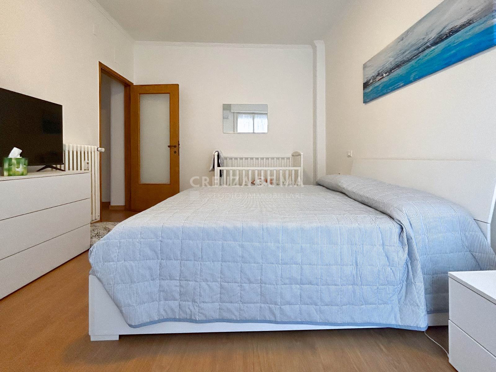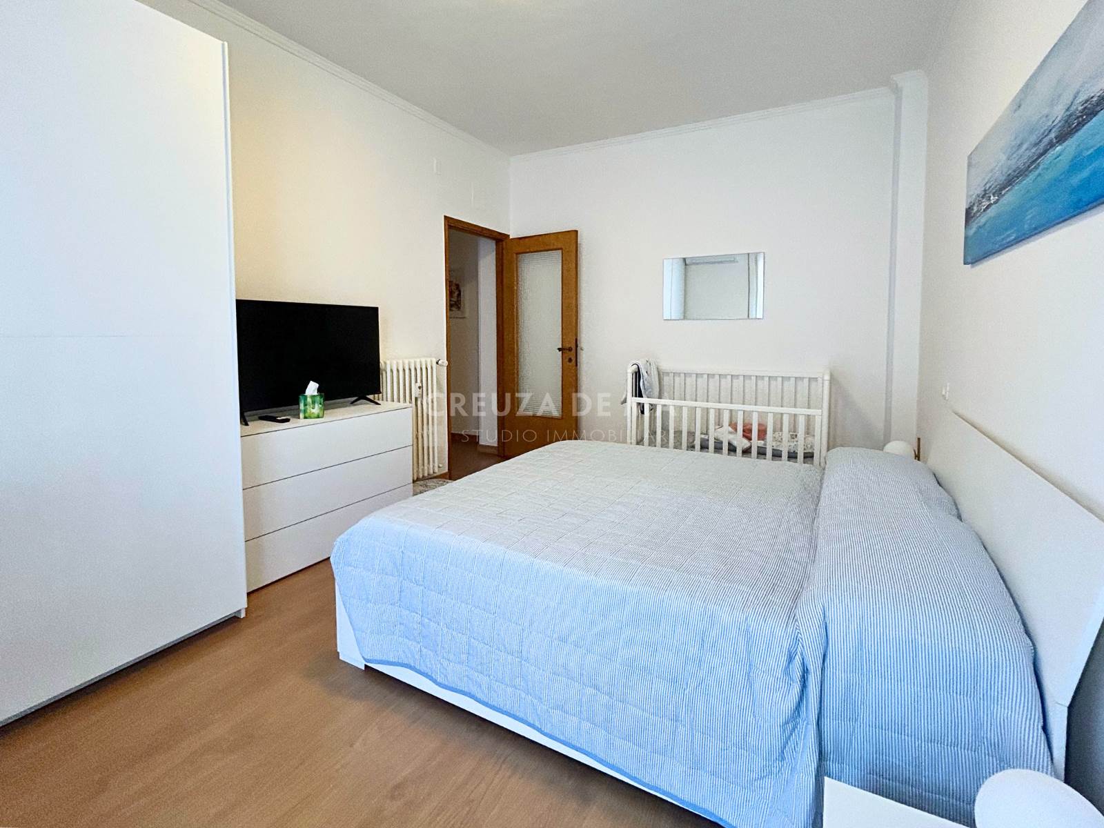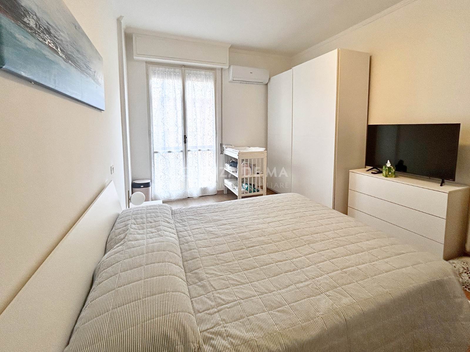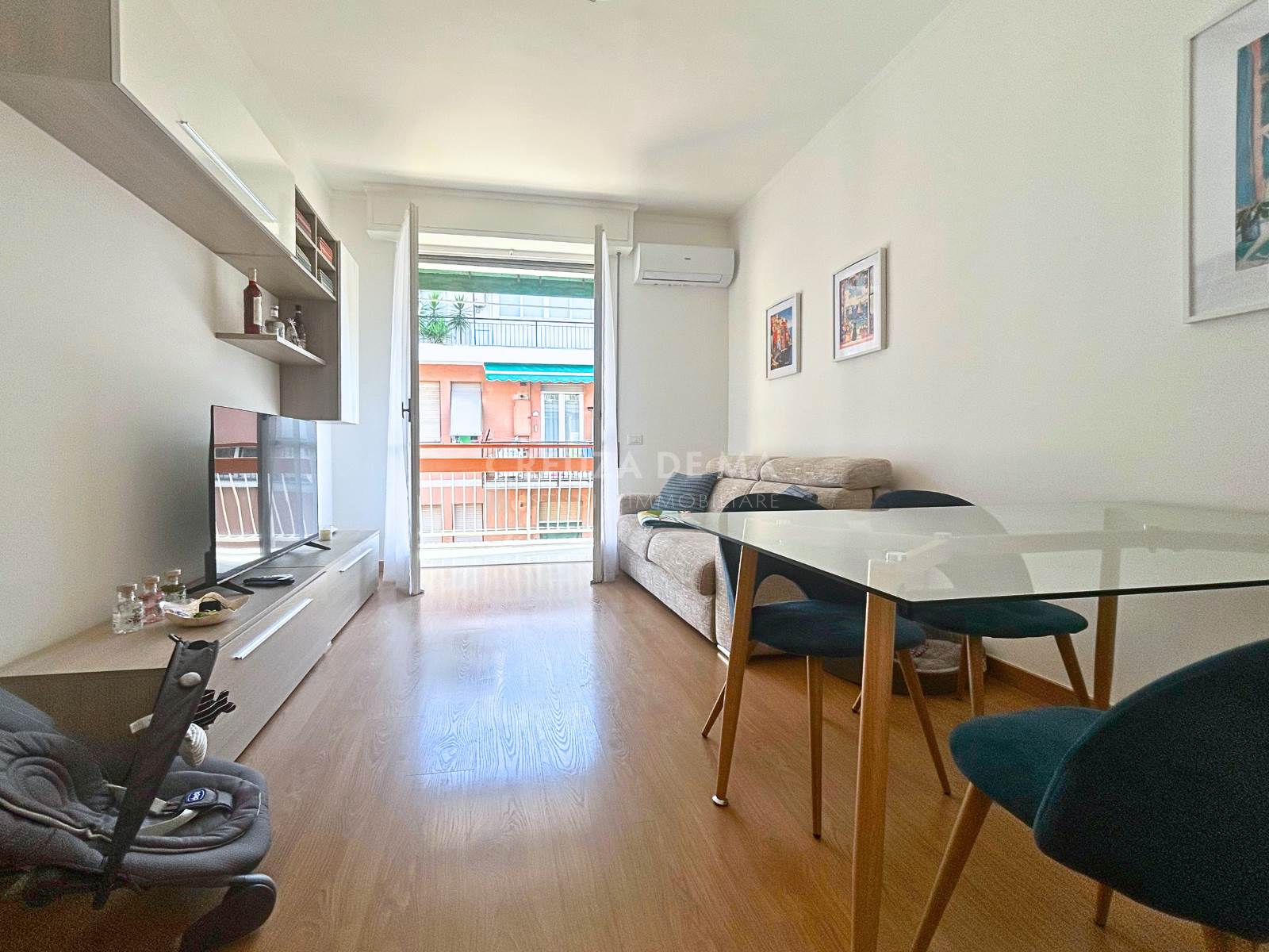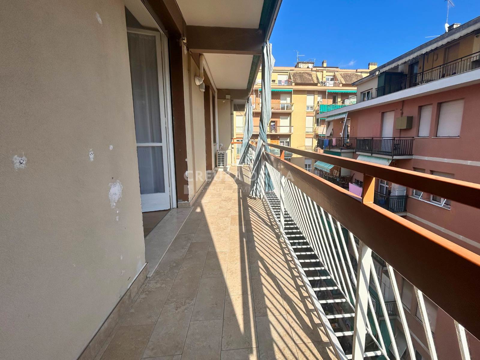 L'immobile è posizionato al quinto piano con ascensore di uno stabile in perfette condizioni e internamente è composto da: ingresso, soggiorno con accesso al primo balcone, cucina abitabile con accesso al secondo balcone, due camere, bagno con finestra e comodo ripostiglio.