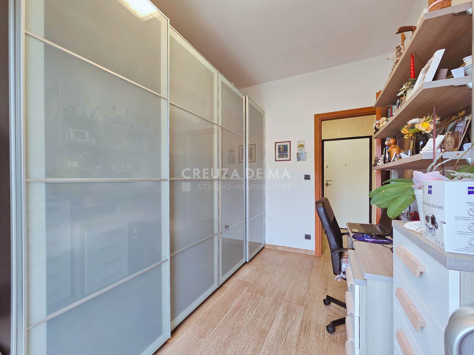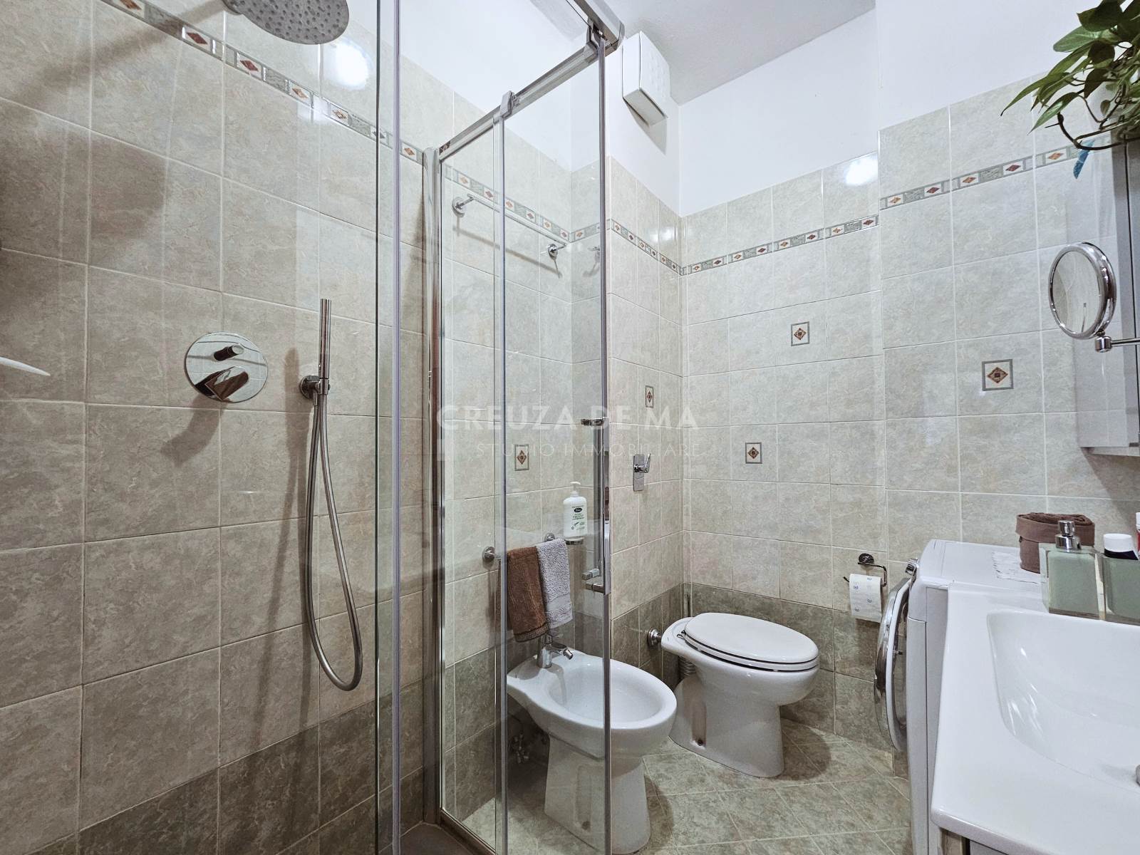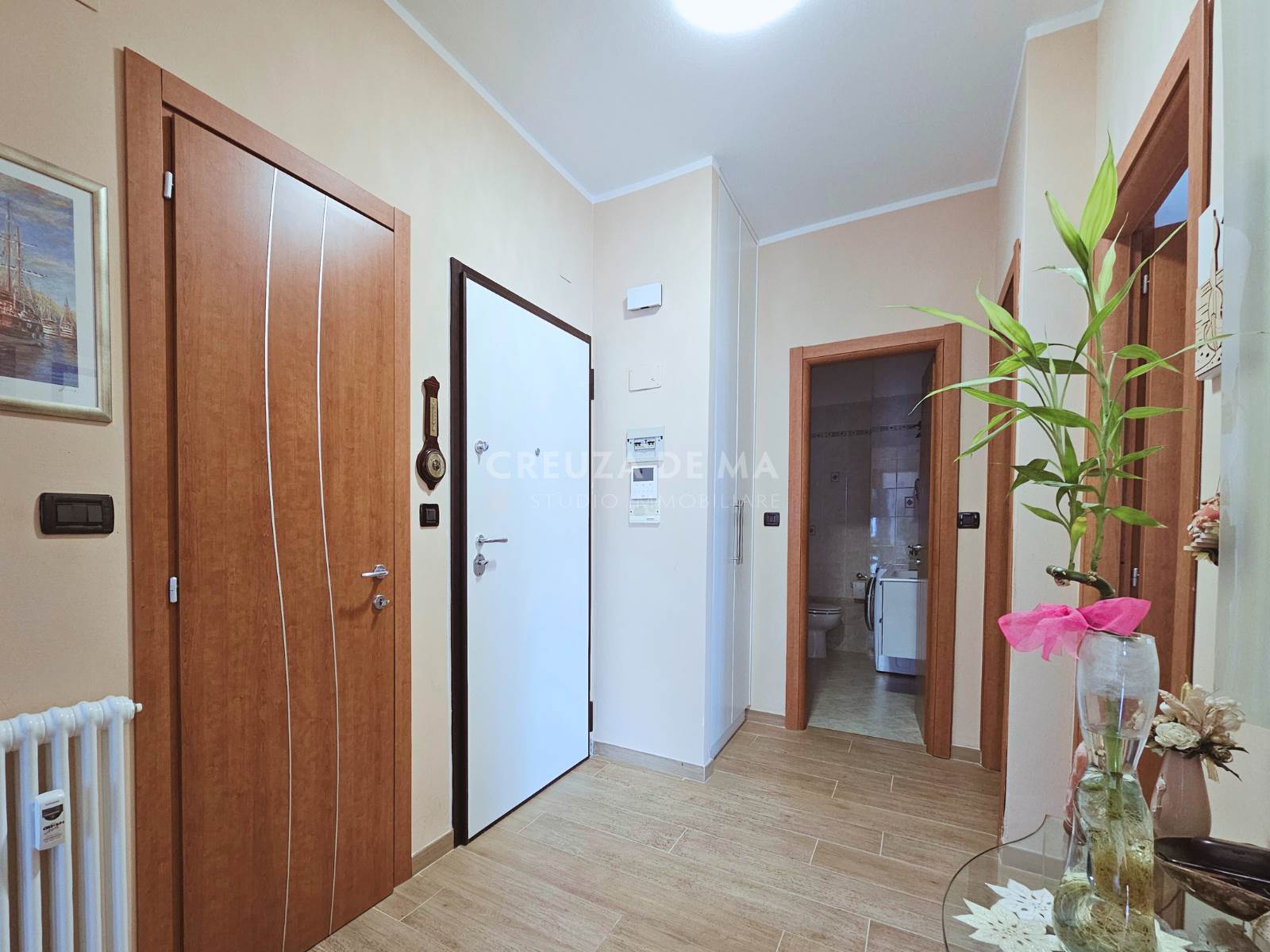 L'ingresso si apre su un pratico disimpegno che organizza razionalmente l'intera superficie della casa; questo spazio è sapientemente attrezzato con un utile ripostiglio dedicato alla zona lavanderia e un comodo armadio a muro per i capispalla. Proseguendo nell'abitazione si accede alla cucina semi-abitabile, caratterizzata da un mobilio nuovo e dotata di ogni comfort, seguita da un accogliente salotto. La zona notte si compone di una spaziosa camera matrimoniale e di una seconda camera, entrambe arricchite da ampie armadiature, mentre il bagno, anch'esso recentemente ristrutturato, dispone di un moderno e generoso box doccia.