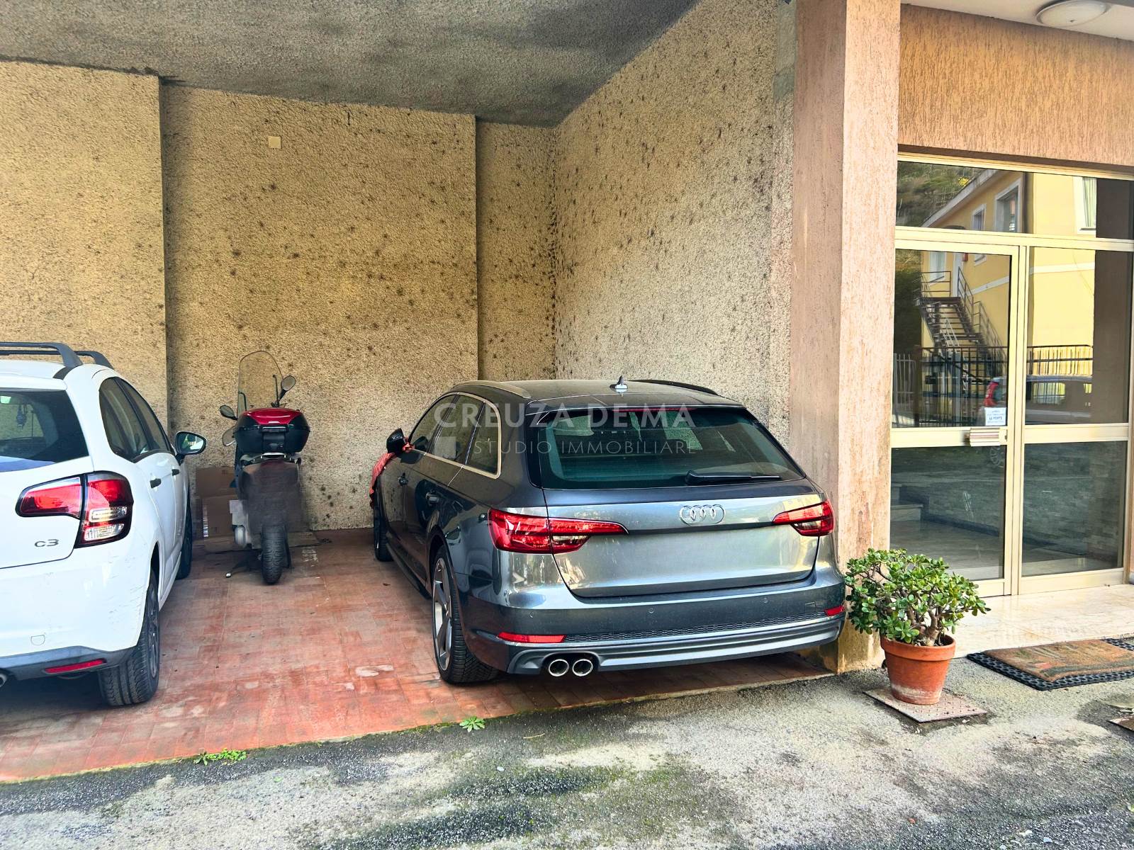 Il posto auto coperto, ad uso esclusivo e perpetuo dell'appartamento, consente di parcheggiare un auto di grandi dimensioni e una moto.