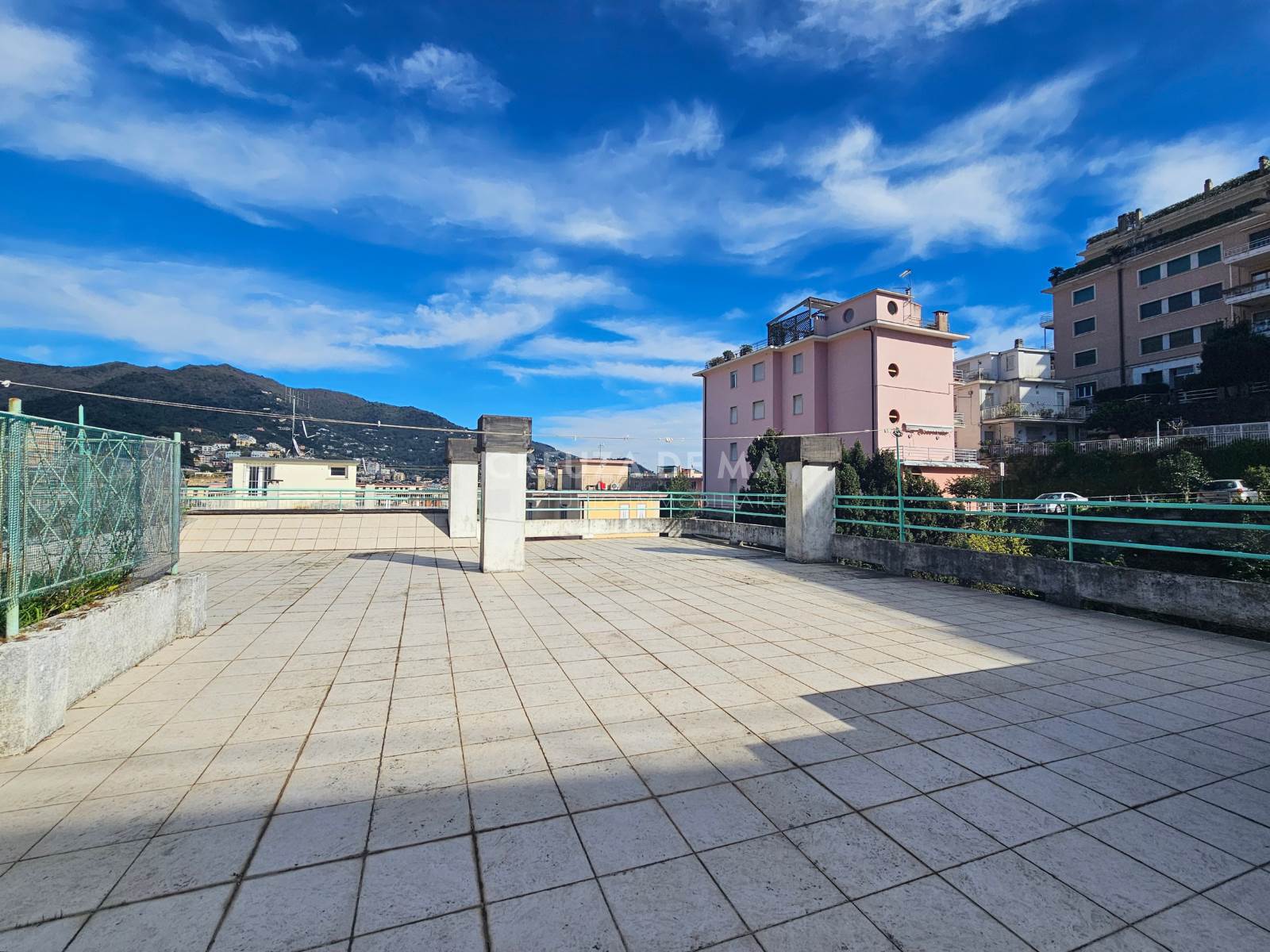 Dal soggiorno e da una delle due camere da letto si accede ai balconi mentre alla terrazza, sovrastante, vi si accede tramite una scala esterna all'appartamento.