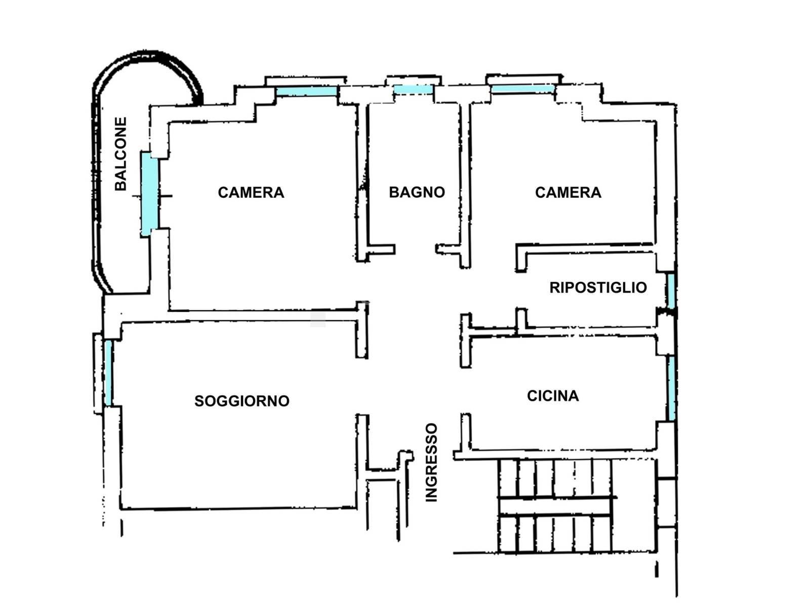 Internamente composto da: ingresso, ampio soggiorno, cucina indipendente, due camere e doppi servizi.