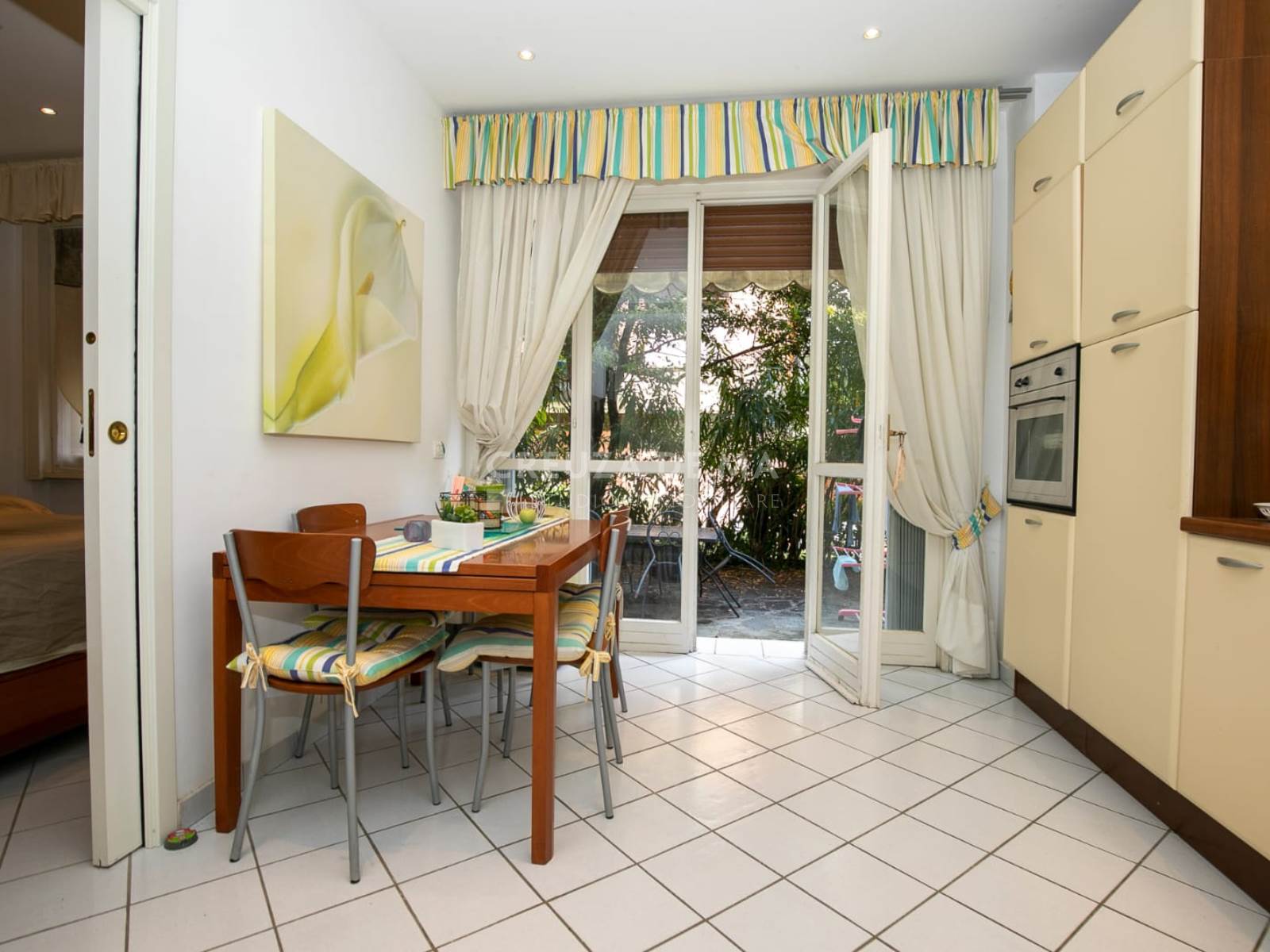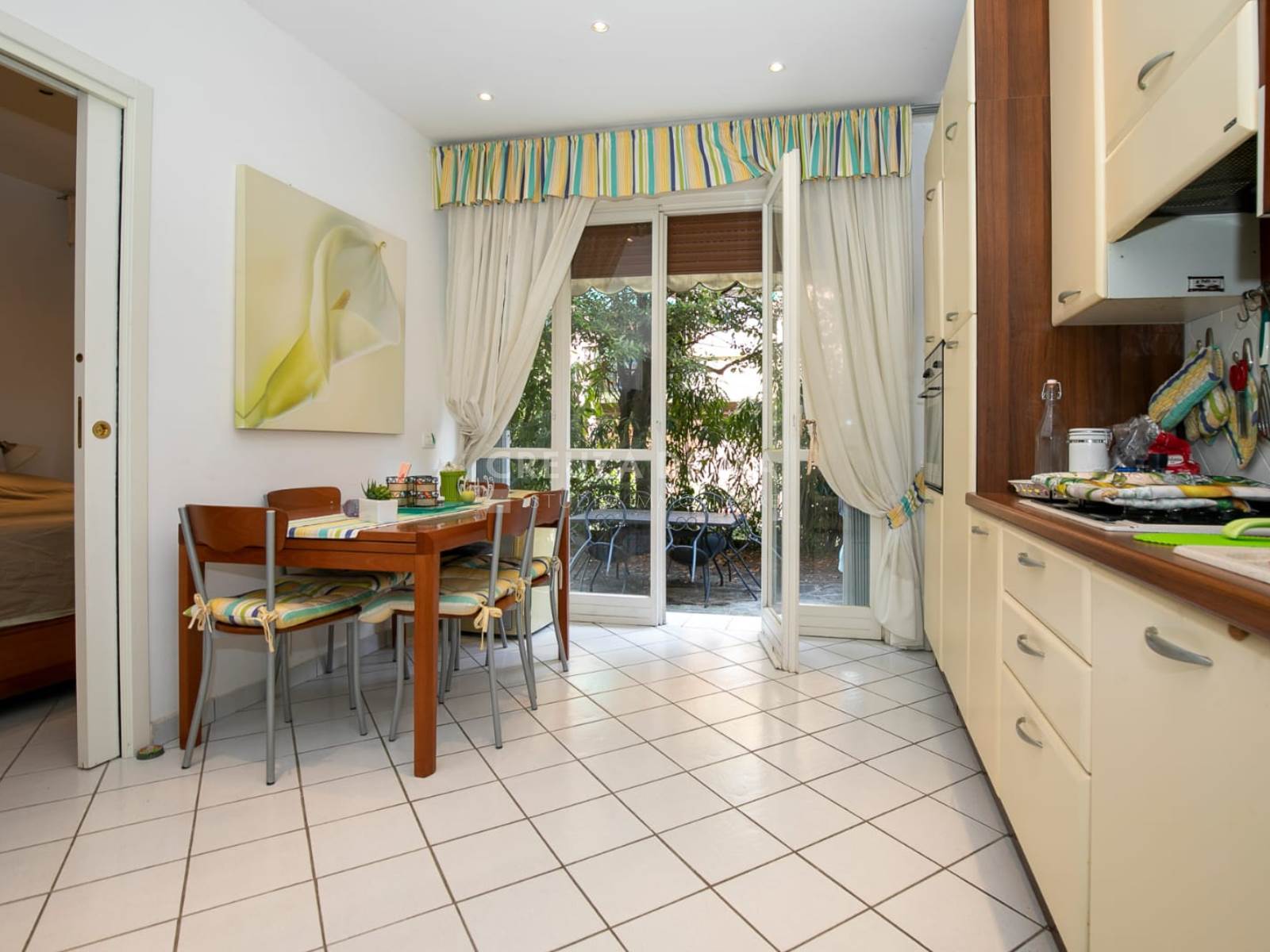 Questo appartamento, situato al primo piano di uno stabile ben tenuto, si presenta in ottime condizioni. Vi innamorerete subito dell'ampio e soleggiato giardino terrazzato, direttamente collegato, che diventa una vera estensione della zona giorno, perfetta per momenti di relax all'aria aperta. Varcata la soglia, sarete accolti da un ingresso che introduce al soggiorno con cucina a vista, un ambiente moderno e funzionale che si apre direttamente sul vostro spazio esterno privato. Completano l'abitazione una confortevole camera da letto matrimoniale e un bagno finestrato.