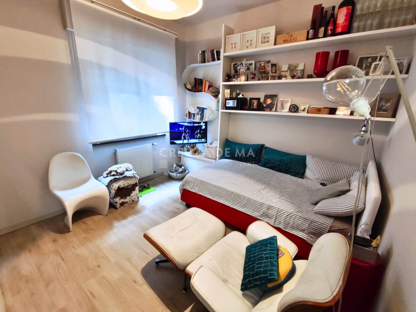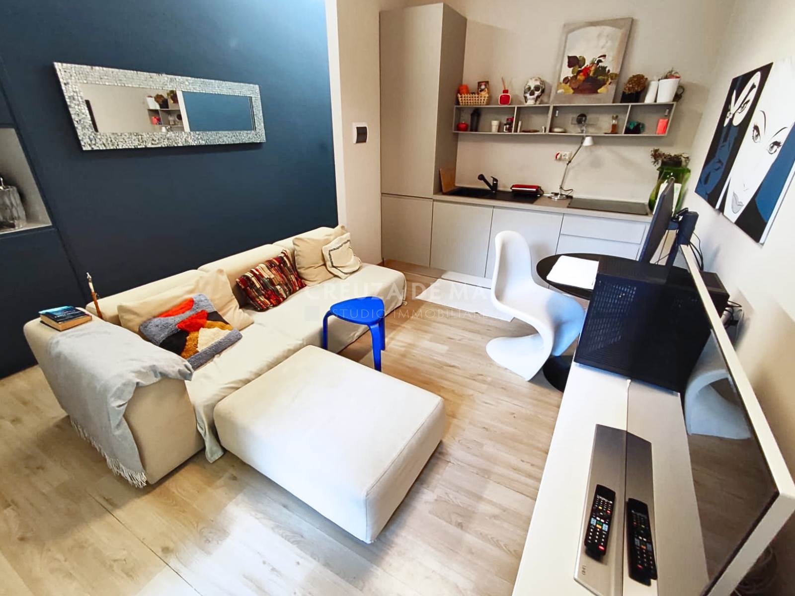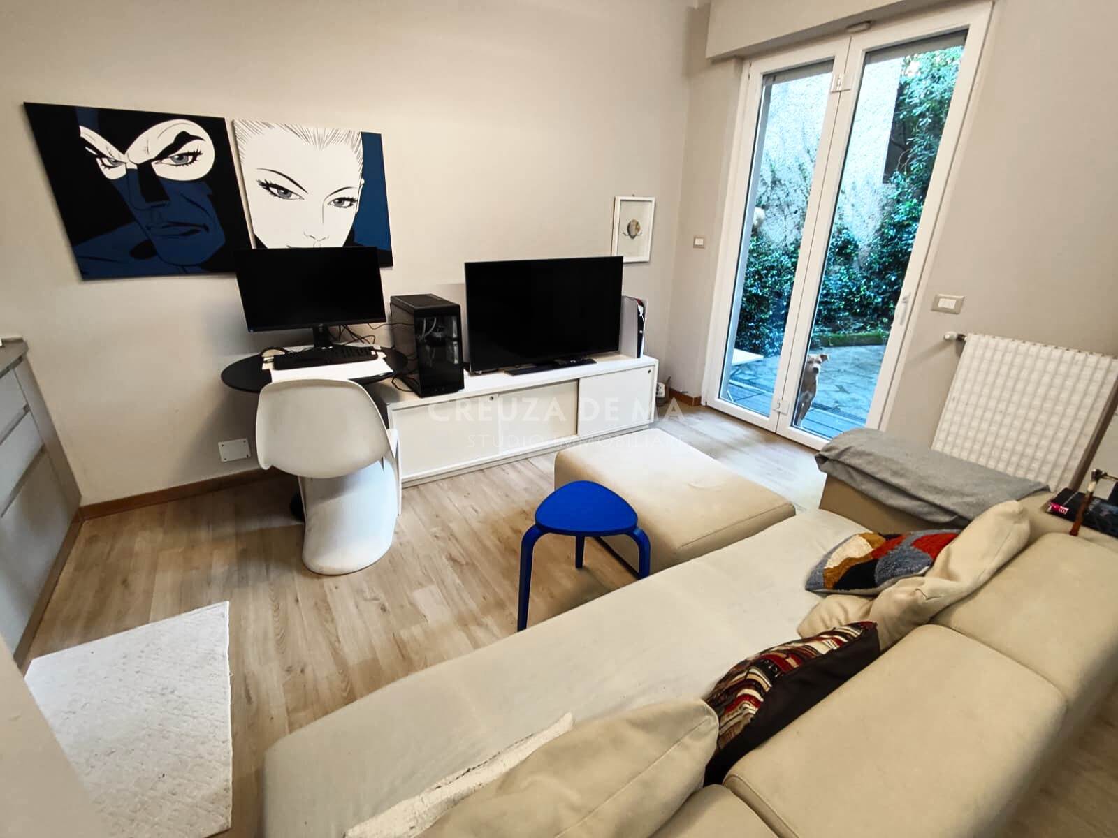 Internamente l'immobile si presenta in ottime condizioni ed è composto da: ingresso, soggiorno con cucina a vista, due camere e doppi servizi.