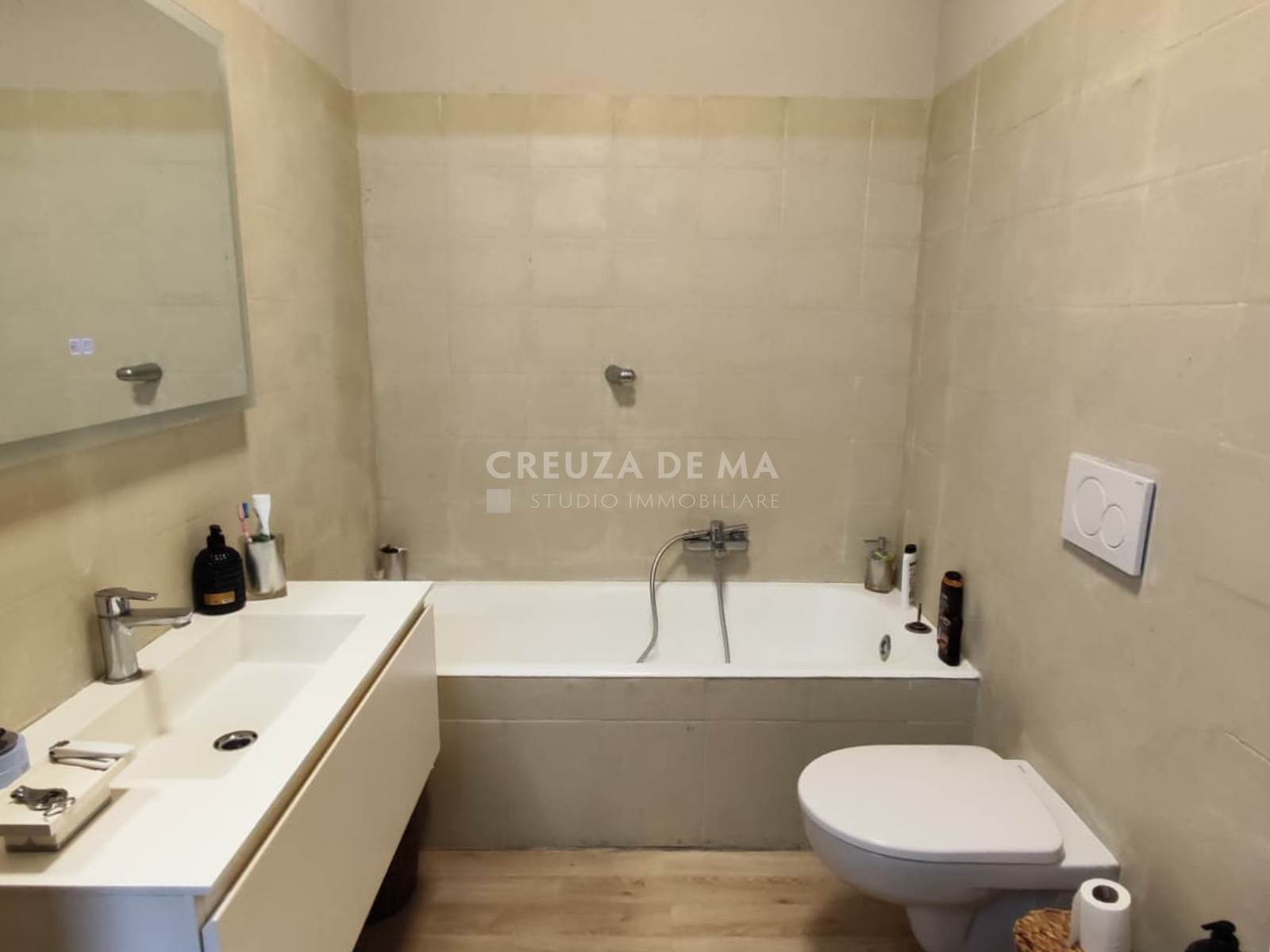 Completano la proprietà un balcone e una terrazza vivibile con vista aperta e scorcio mare ed un essenziale posto auto coperto privato.