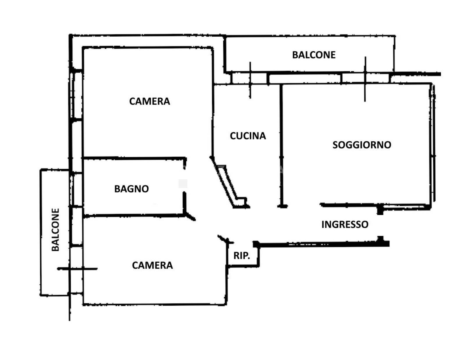 Internamente è composto da: ingresso, soggiorno, cucina abitabile, due camere, bagno con finestra e ripostiglio.