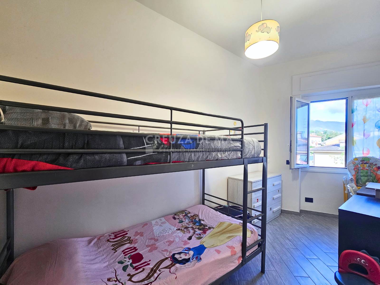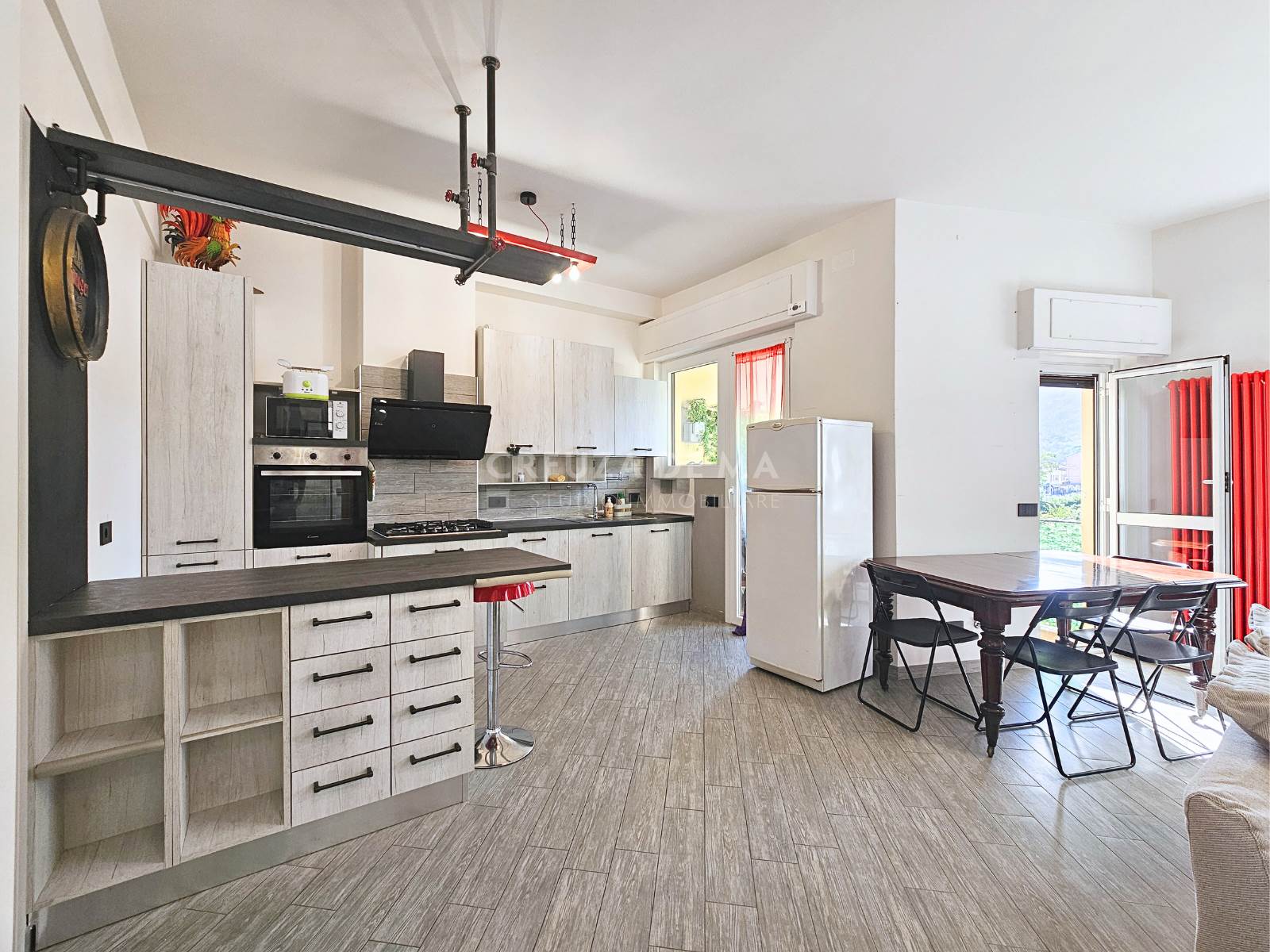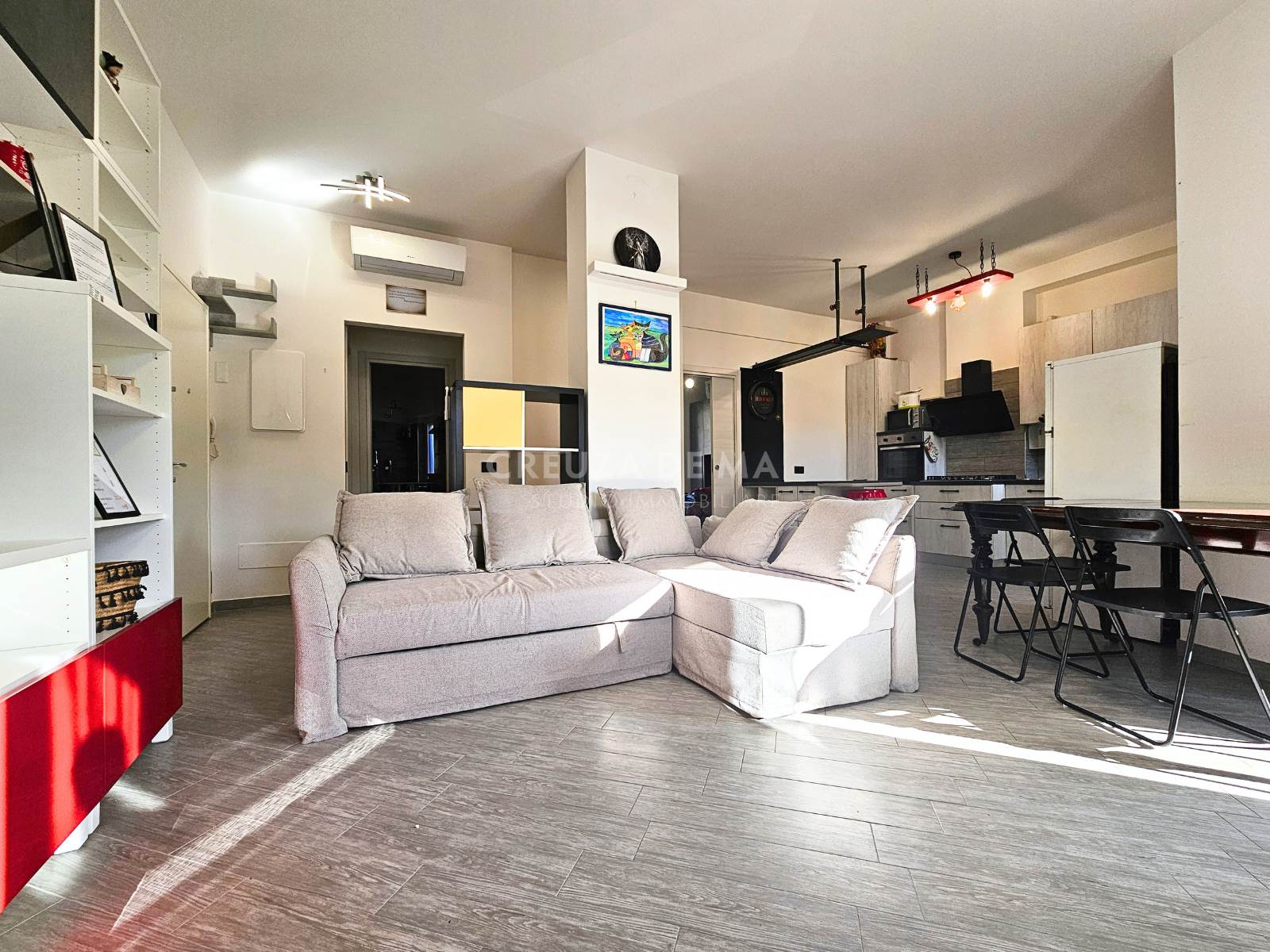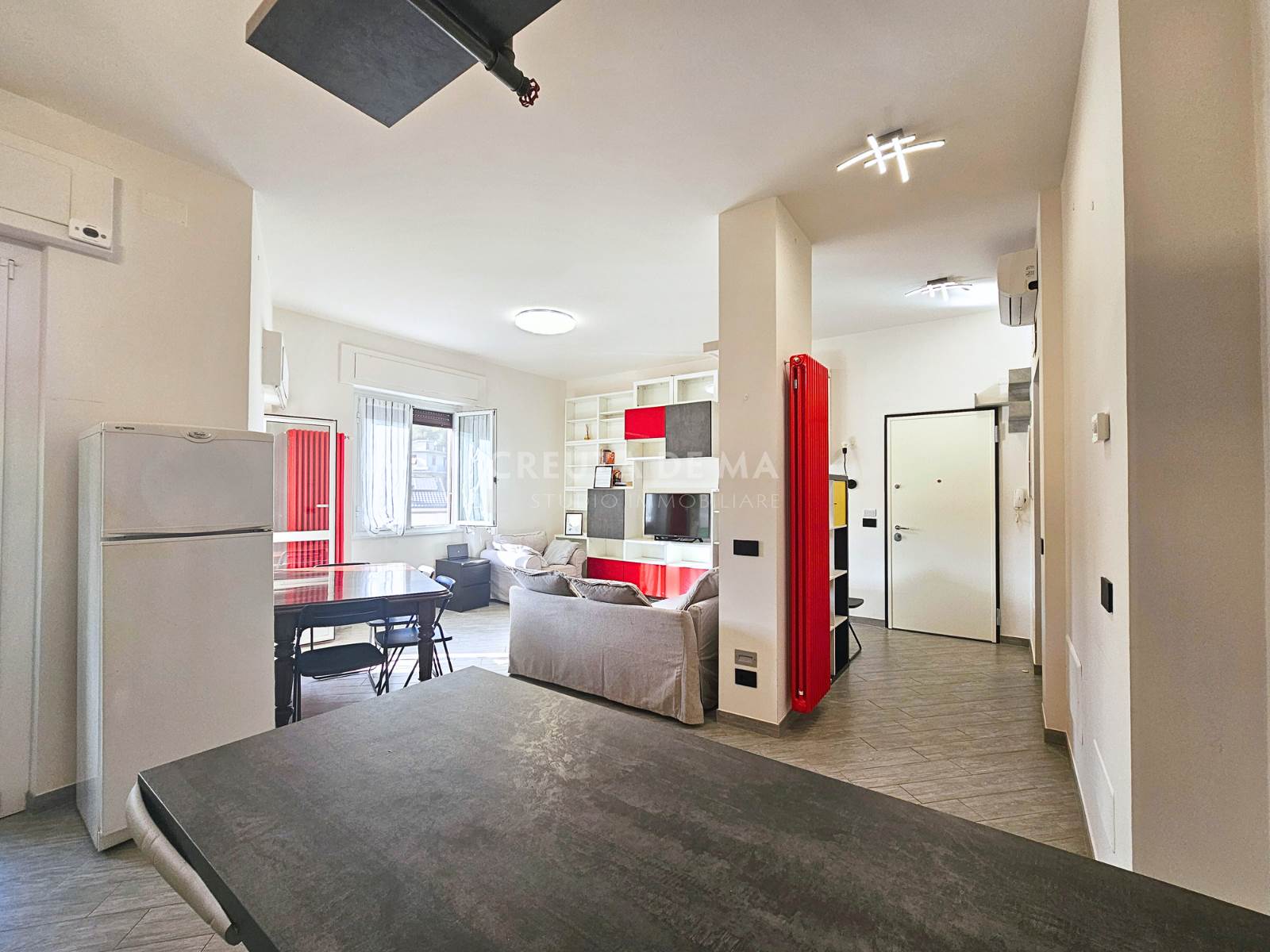 L'immobile si presenta in perfette condizioni generali e internamente è composto da: ingresso, ampia zona living con cucina a vista, due camere e doppi servizi entrambi con finestra.