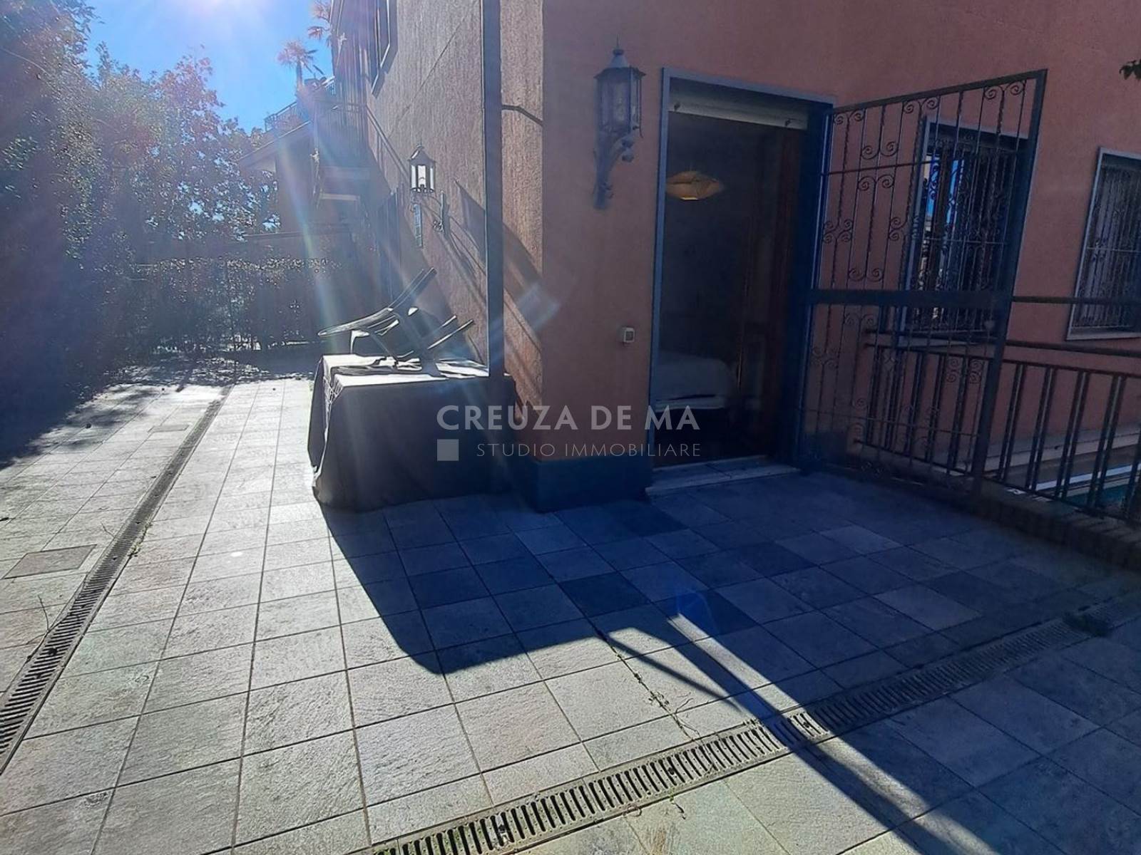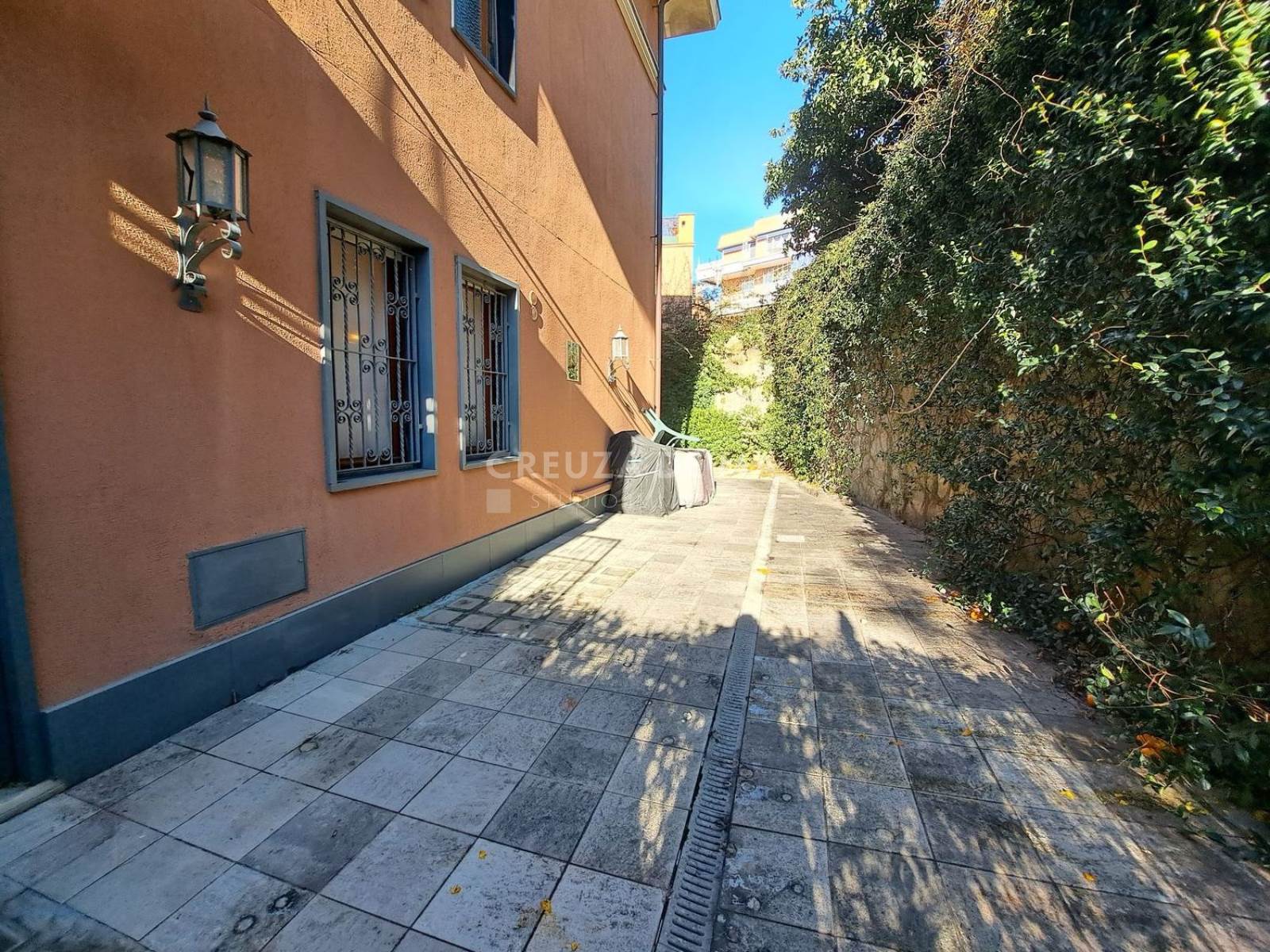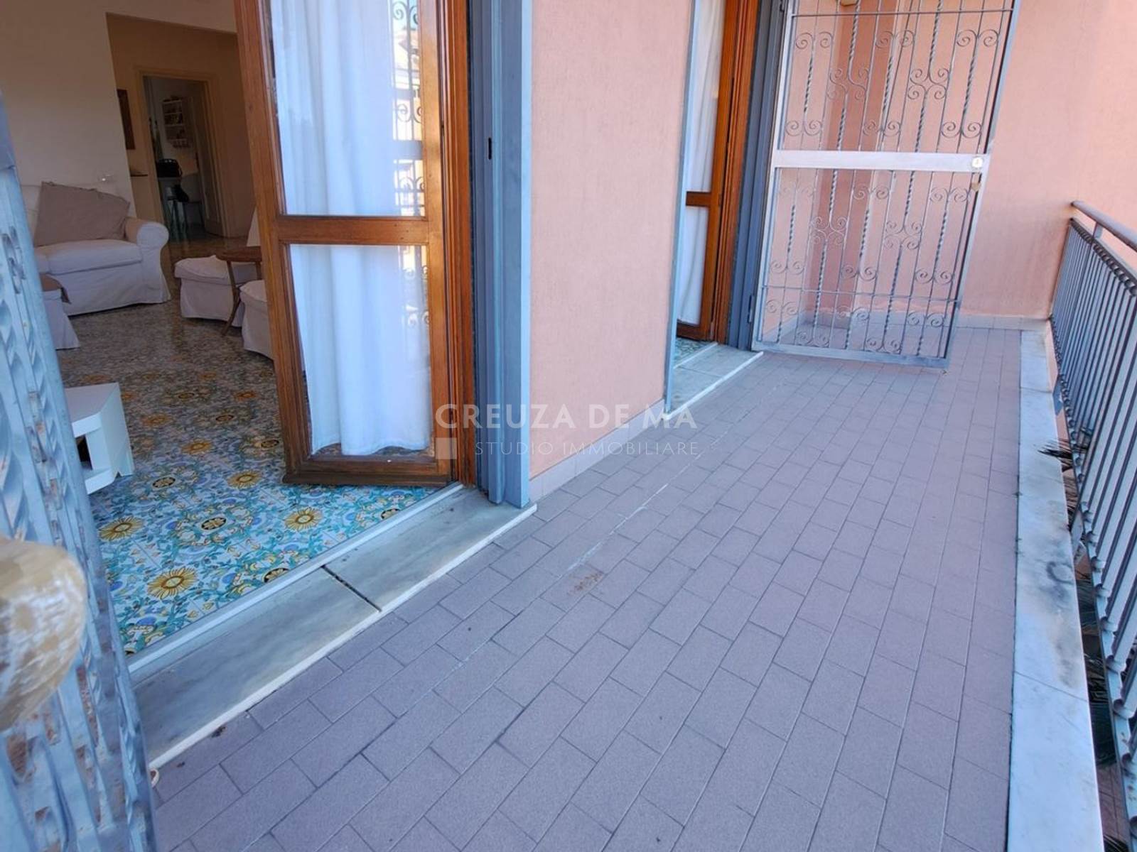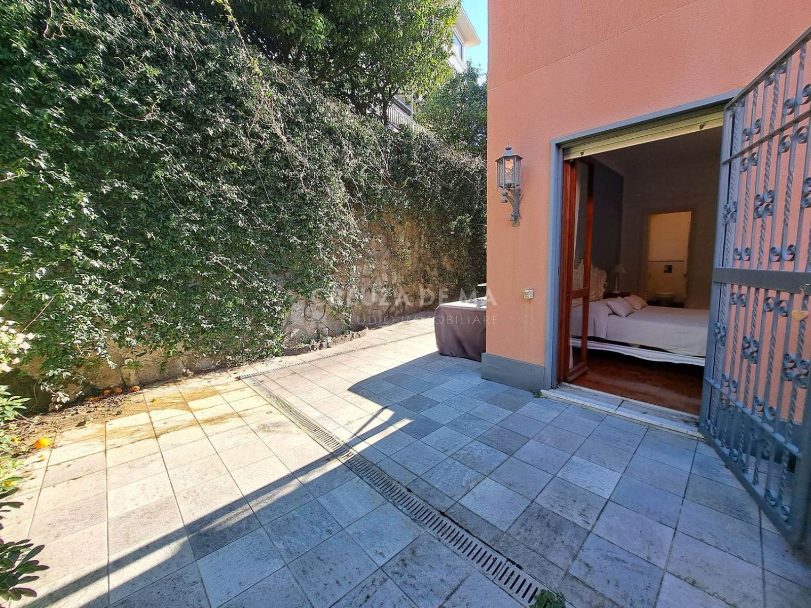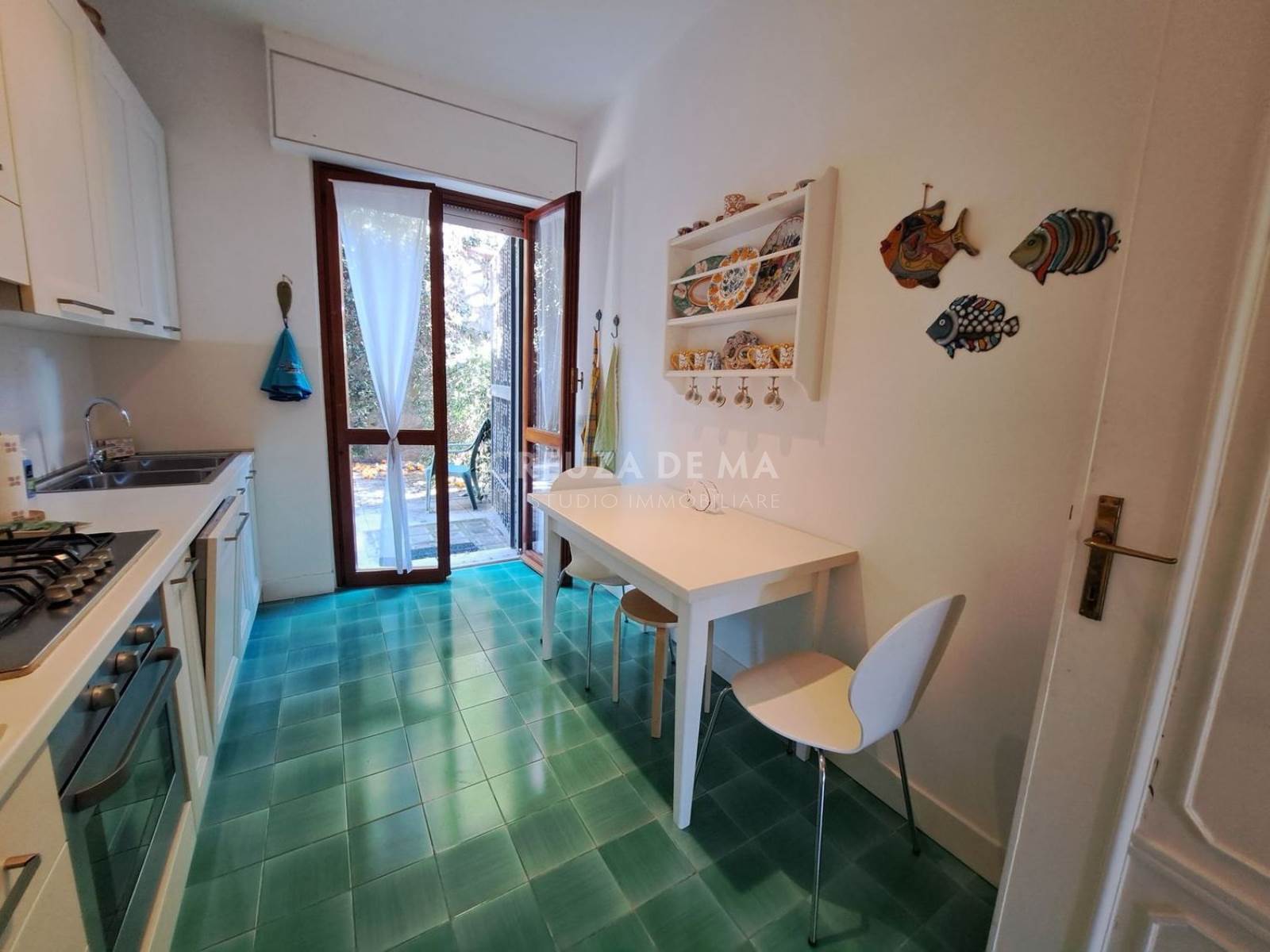 Totalmente e finemente ristrutturato, l'immobile si presenta come la soluzione definitiva per una clientela esigente alla ricerca di volumi generosi e finiture di pregio. L'ingresso introduce all'ampio salone doppio di rappresentanza, sapientemente suddiviso tra area living e zona pranzo. Da qui si accede al balcone che offre una piacevole vista panoramica sulla cittadina, con un affaccio che cattura la suggestiva parziale vista mare, un dettaglio che conferisce un innegabile valore emozionale all'ambiente. Il vero elemento di distinzione di questa proprietà è il suo magnifico spazio esterno terrazzato, una vera e propria oasi verde di generose dimensioni, preziosissima in un contesto centrale. Questo giardino privato si connette armoniosamente con la cucina abitabile, rendendosi l'ambientazione ideale per cene estive e momenti conviviali all'aperto. L'accesso a questo spazio di lusso è garantito anche dalla suite matrimoniale principale. La zona notte, funzionalmente separata, ospita due ampie camere matrimoniali, di cui una dotata di bagno privato esclusivo, e una versatile cameretta. Completano l'unità il secondo bagno padronale, un pratico vano lavanderia e armadiature a muro nel disimpegno. L'offerta è completata da una capiente cantina di 13 metri quadrati.