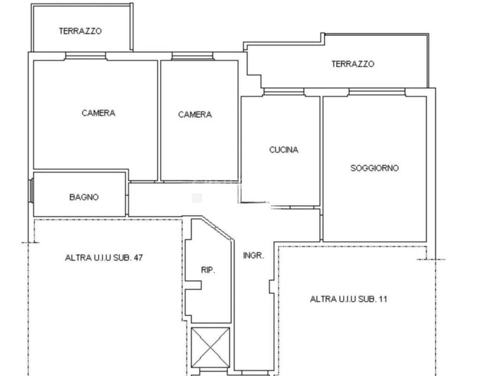 L'immobile si apre su un ingresso che conduce a un ampio soggiorno, dotato di accesso diretto a un godibile terrazzo vivibile, ideale per pranzi e relax all'aperto. La zona giorno prosegue con una spaziosa cucina abitabile. La zona notte comprende due camere da letto (di cui una con balcone privato), un bagno finestrato e un comodo ripostiglio.