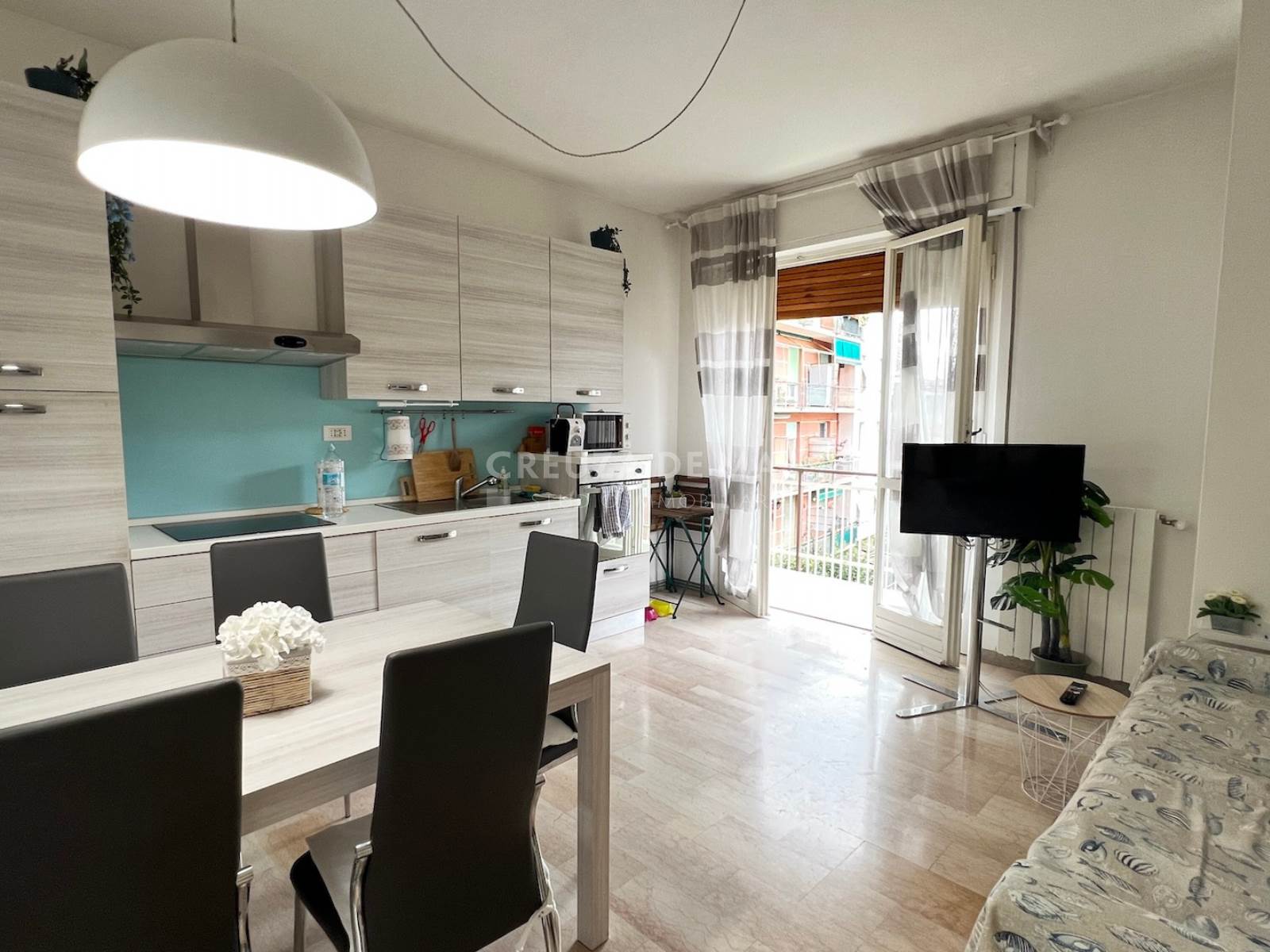 L'immobile, ottimamente distribuito, si compone di: ingresso, soggiorno con cucina a vista, due camere e bagno con finestra appena ristrutturato.