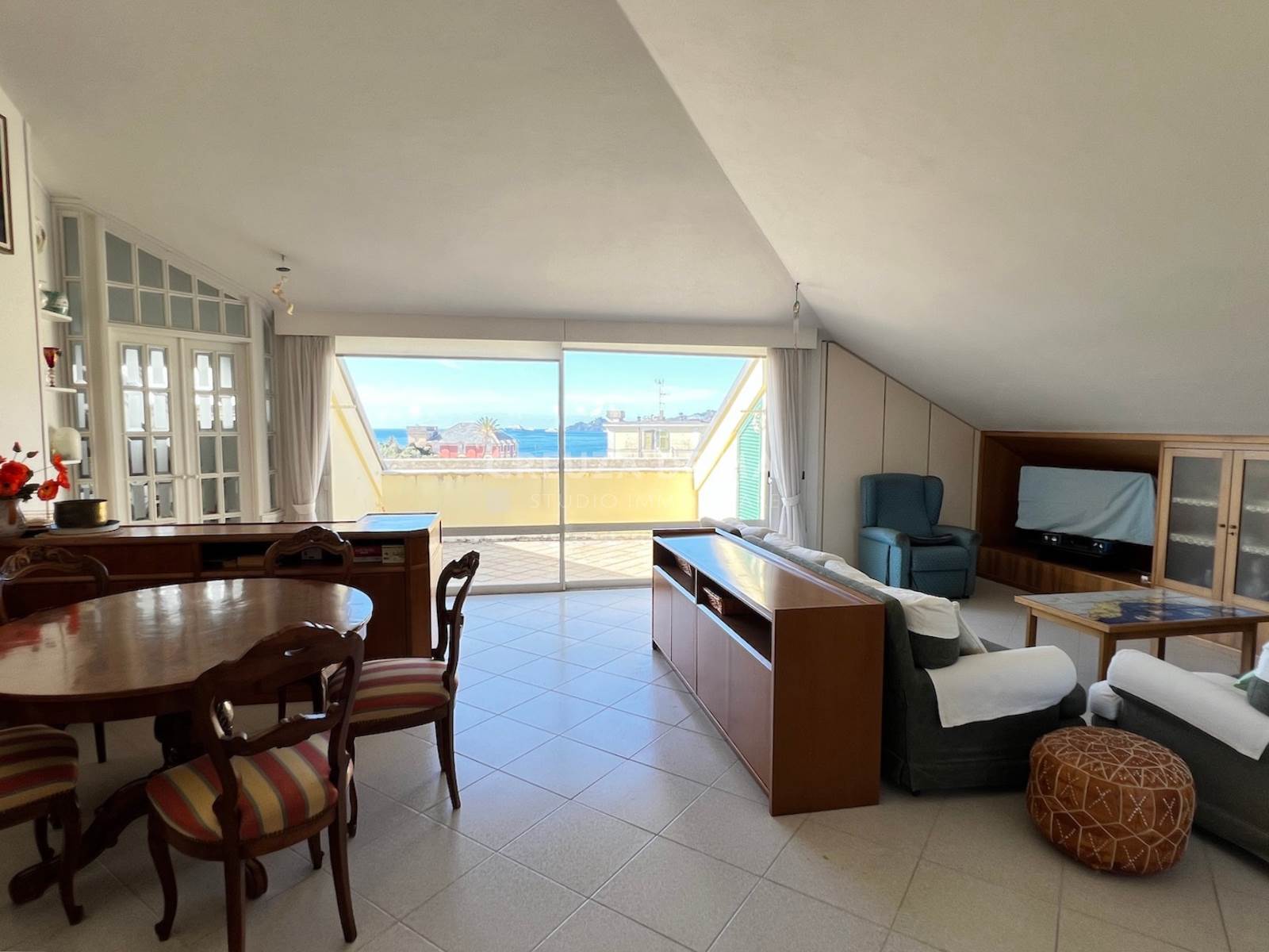 All'ultimo piano con ascensore di un elegante stabile dell'ottocento, attico di 100 mq più balcone, terrazza con splendida vista mare e comoda cantina.