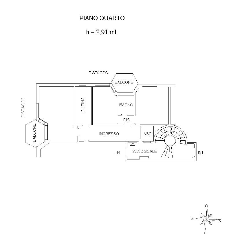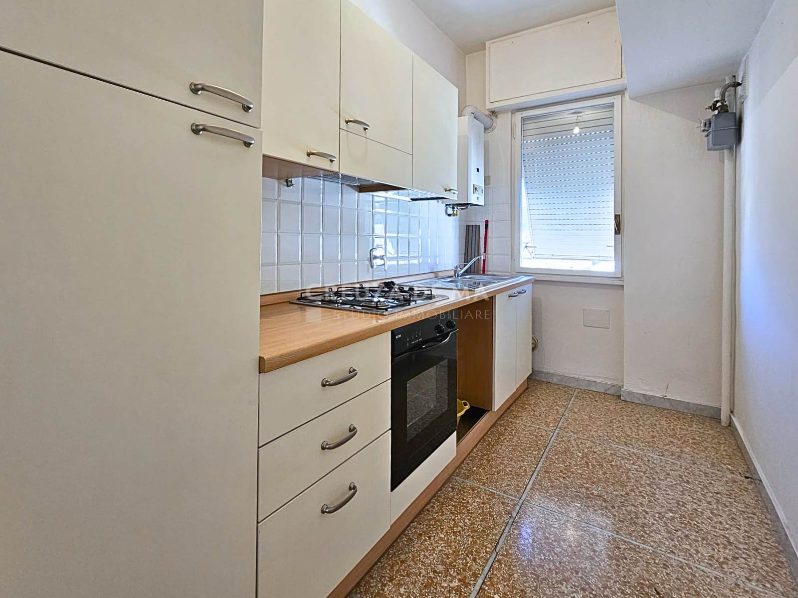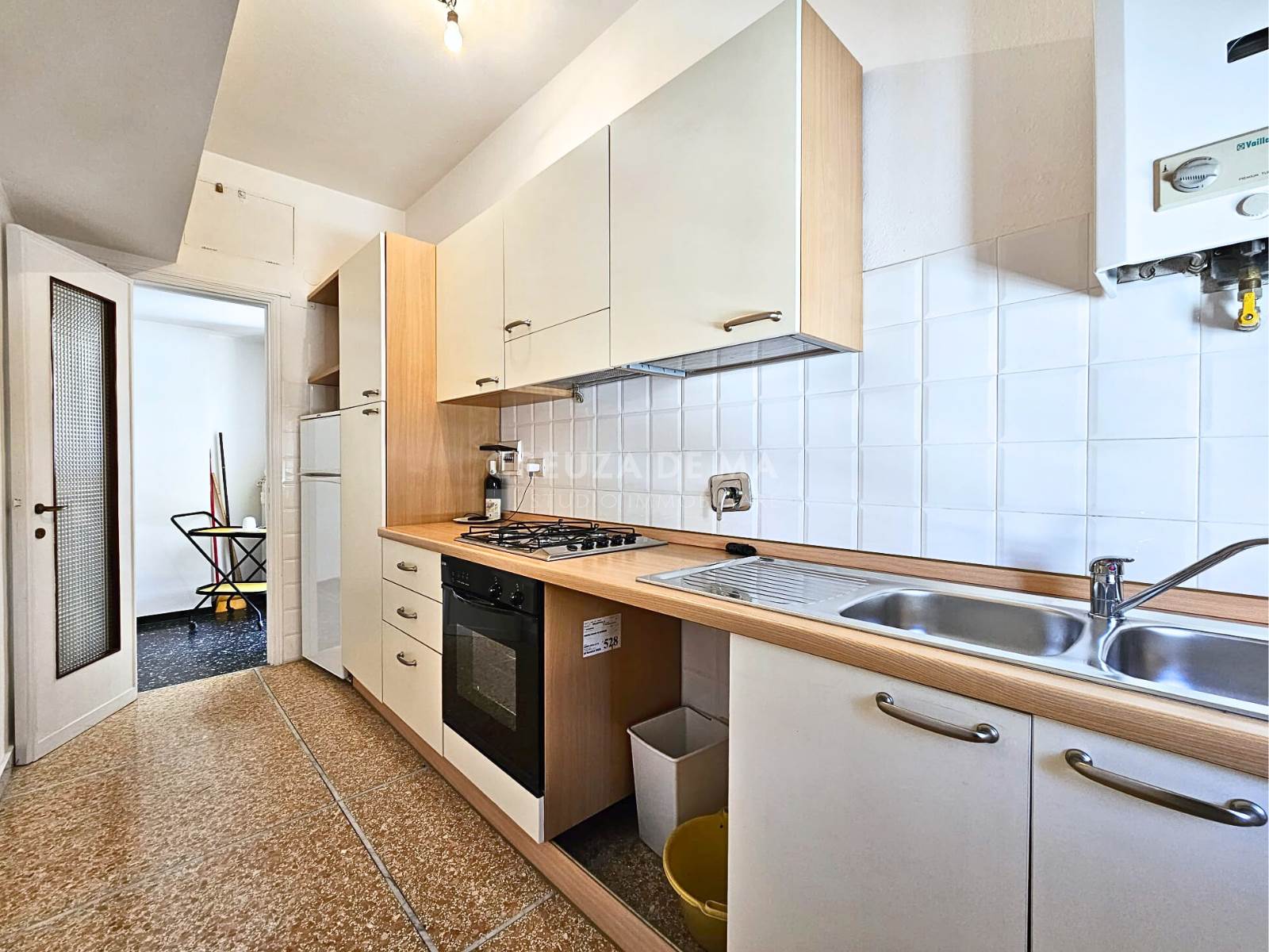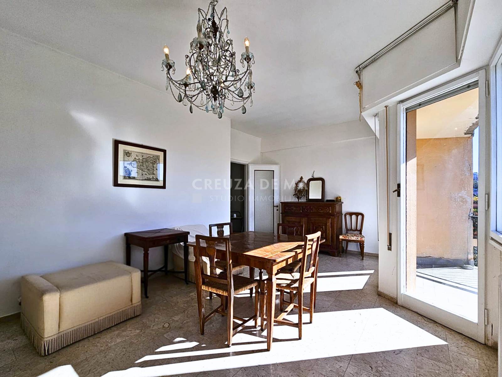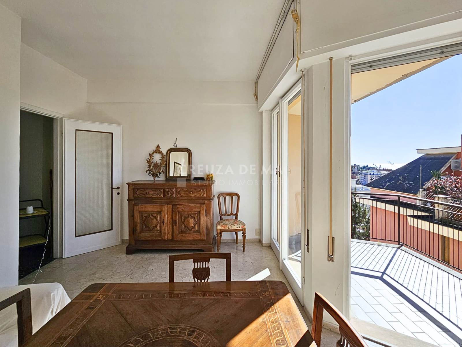 L'immobile grazie al piano alto e all'esposizione a Sud-Ovest gode di un' ottima esposizione solare ed è composto da: ingresso, soggiorno con accesso al primo balcone con scorcio mare, cucinotto indipendente, due camere di cui una con accesso al secondo balcone e bagno con finestra recentemente ristrutturato.