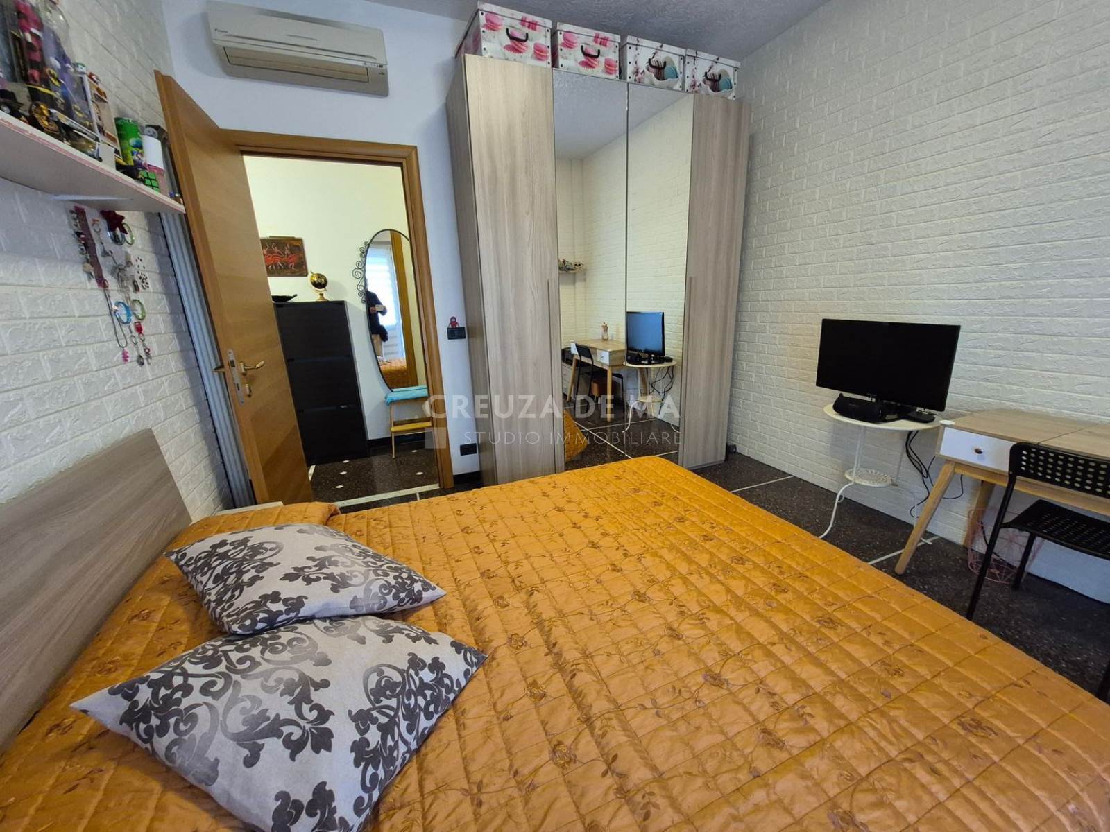 L’immobile è composto da ingresso, soggiorno, cucina indipendente, due camere matrimoniali, bagno finestrato, ripostiglio e due balconi vivibili con esposizione sud/est. Internamente si presenta in ottimo stato, con porta blindata, aria condizionata e riscaldamento autonomo. Spese condominiali circa 1.200 euro annui comprensive di acqua fredda.