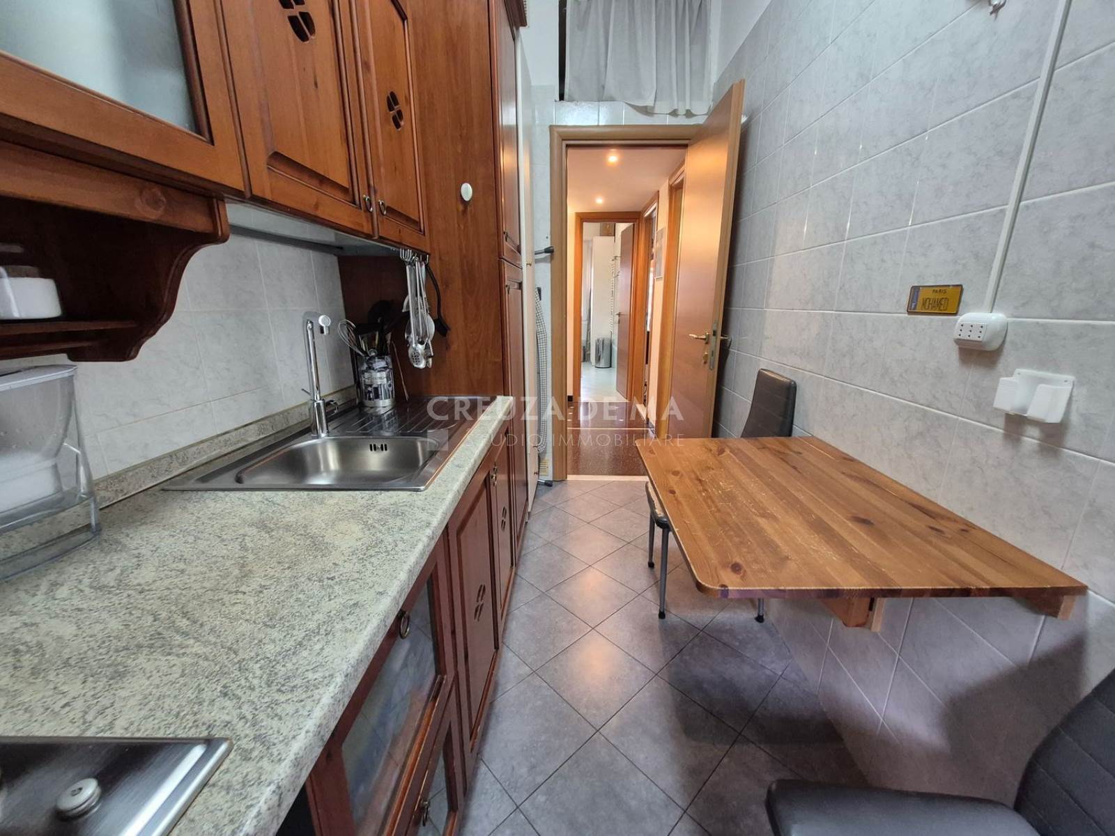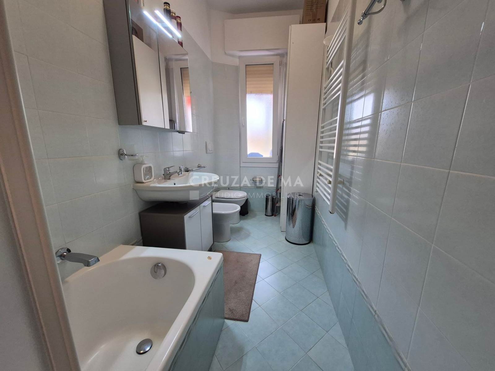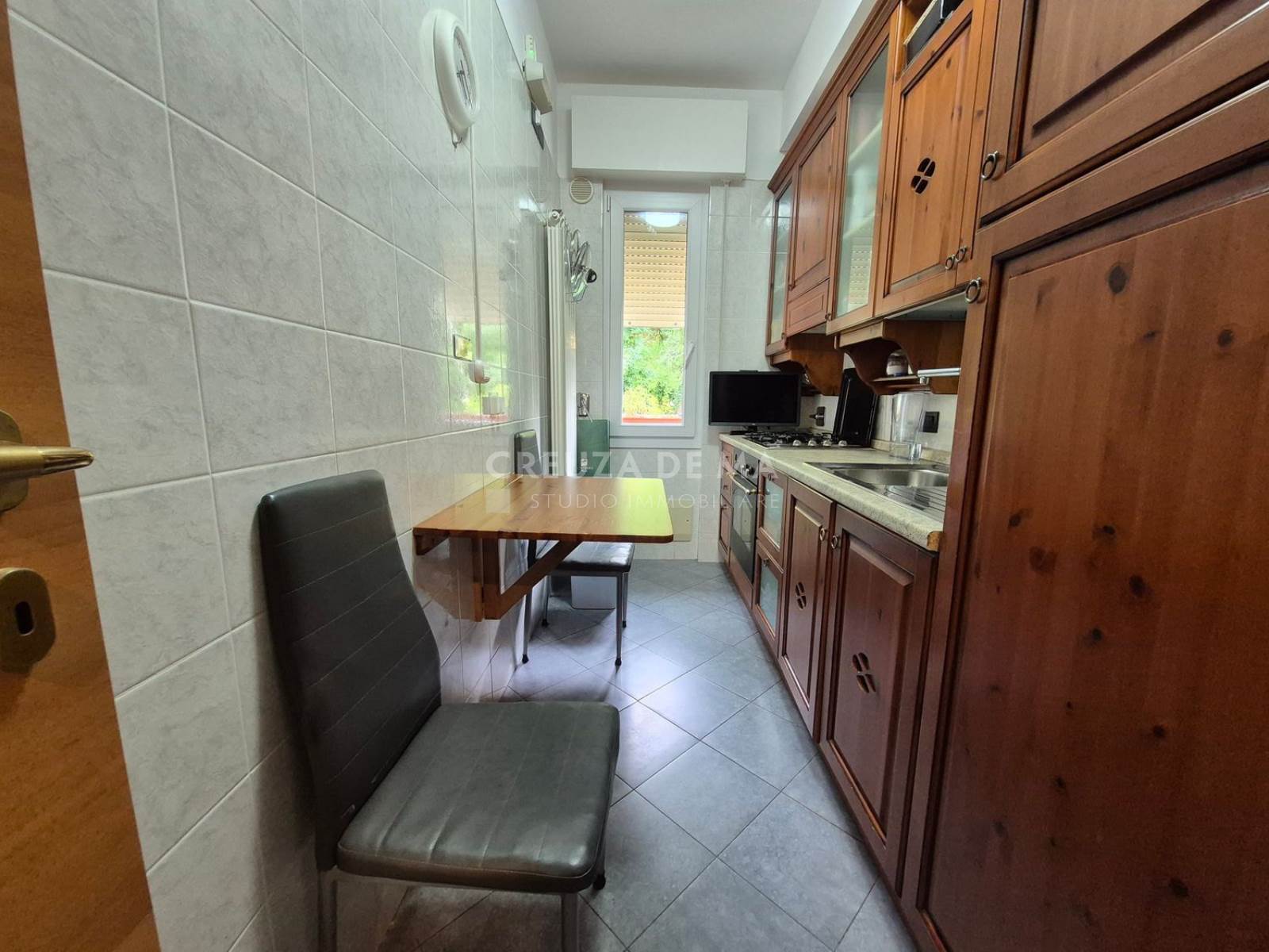 A circa 700 metri dal centro e dal mare, in posizione silenziosa, trilocale ristrutturato di 80 mq commerciali (75 mq calpestabili) al terzo piano con ascensore, in condominio signorile in buone condizioni.