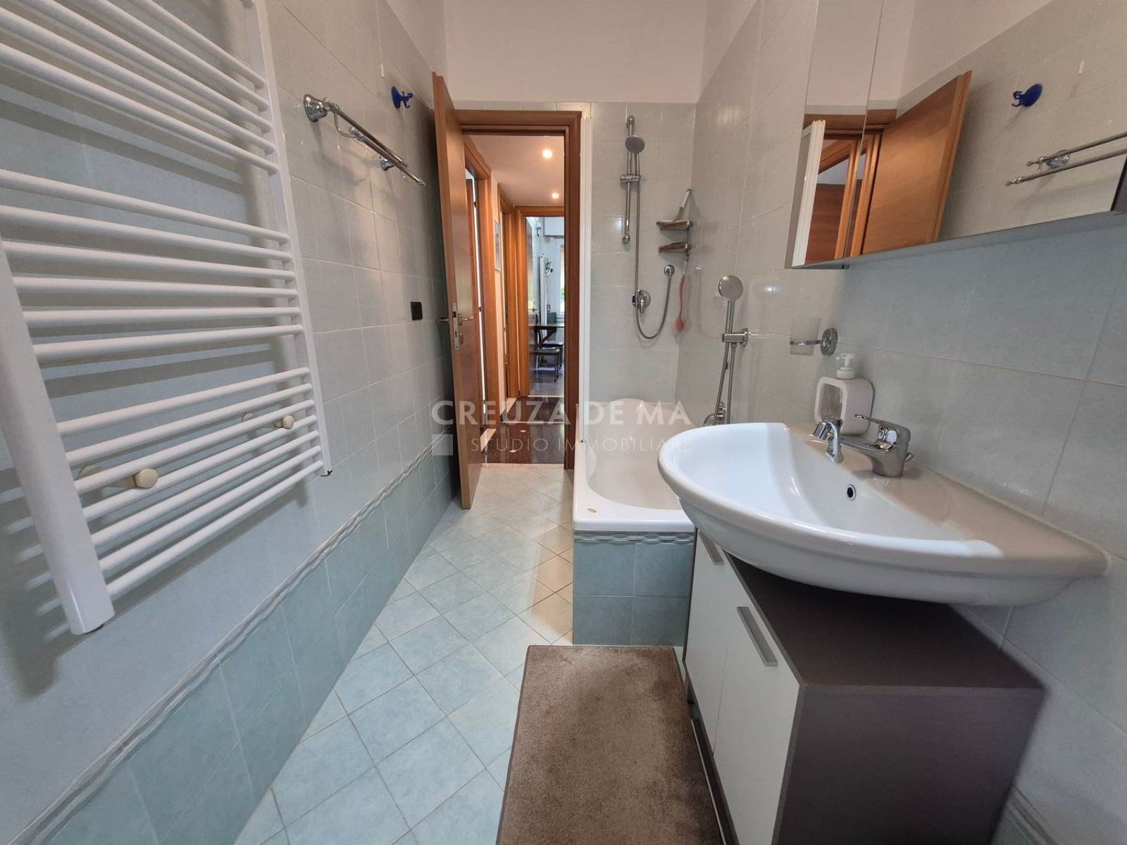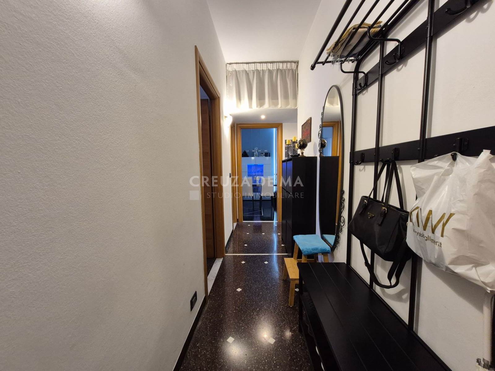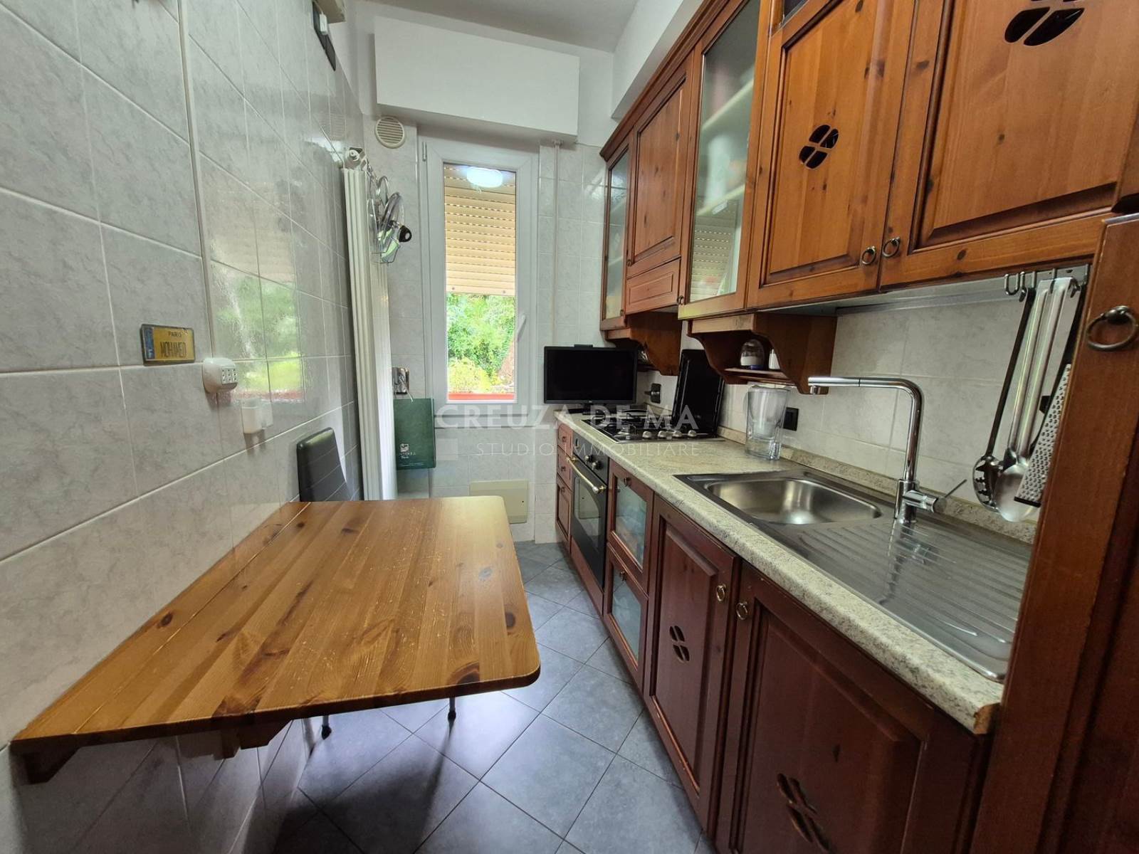 A circa 700 metri dal centro e dal mare, in posizione silenziosa, trilocale ristrutturato di 80 mq commerciali (75 mq calpestabili) al terzo piano con ascensore, in condominio signorile in buone condizioni.